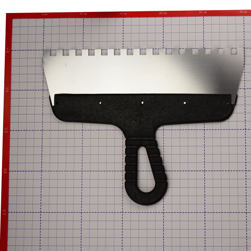 Применяется для равномерного нанесения на различные поверхности клеевых растворов, иных отделочных материалов и их последующего разравнивания с образованием борозд.