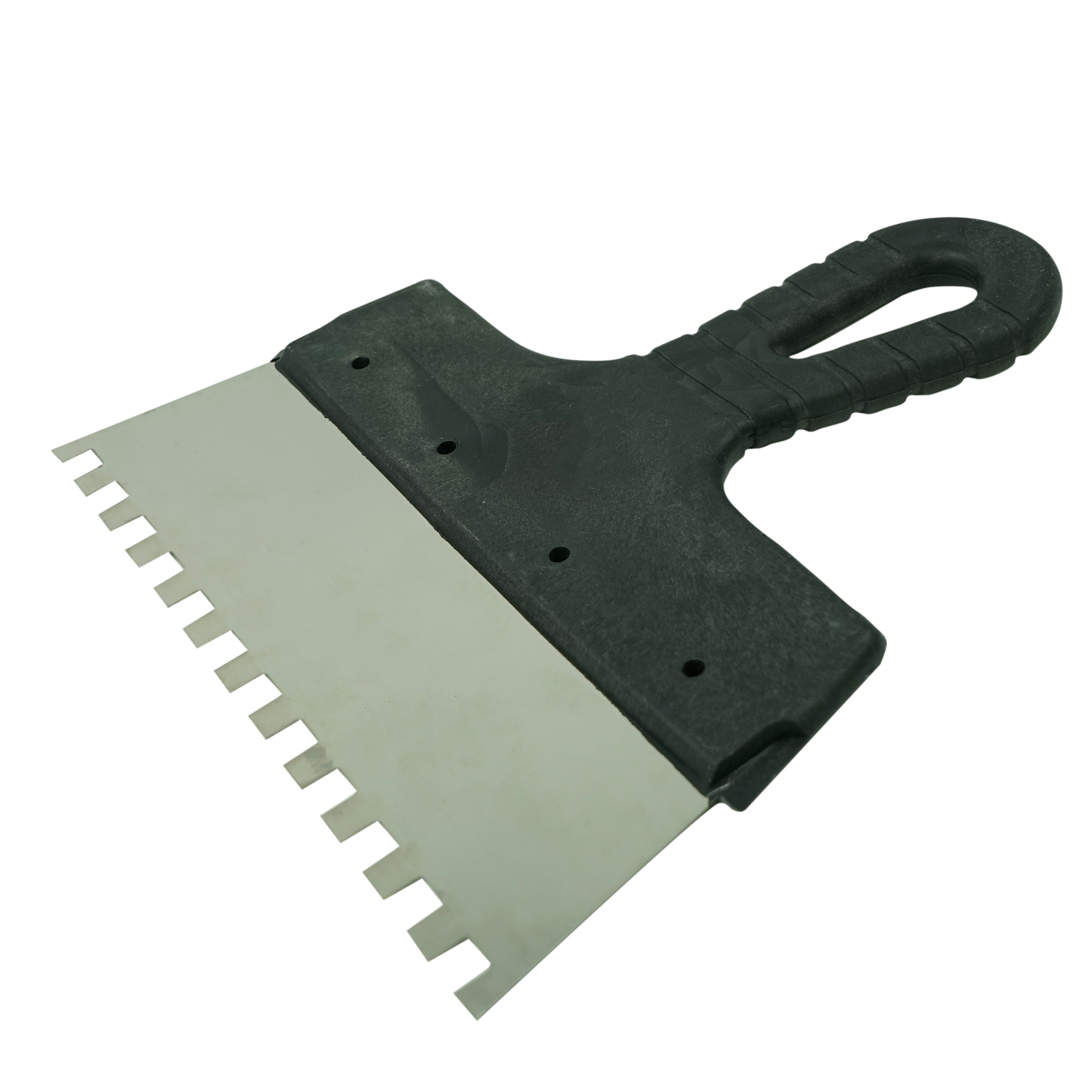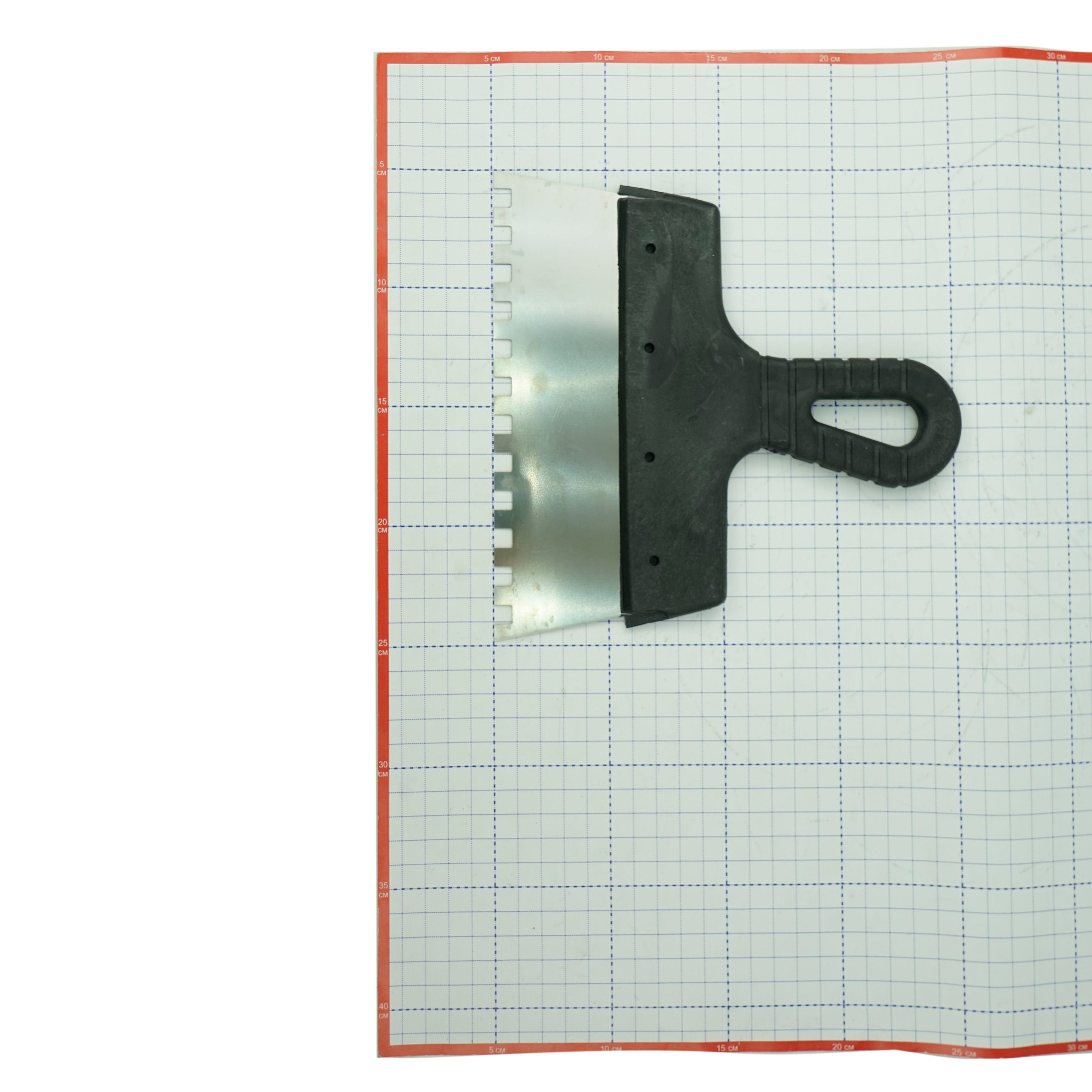 Применяется для равномерного нанесения на различные поверхности клеевых растворов, иных отделочных материалов и их последующего разравнивания с образованием борозд.