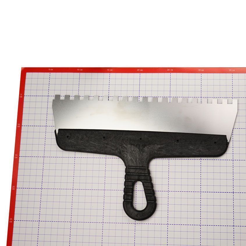 Применяется для равномерного нанесения на различные поверхности клеевых растворов, иных отделочных материалов и их последующего разравнивания с образованием борозд.
