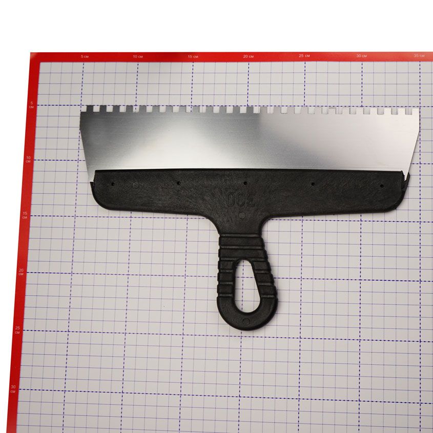 • Наличие зубцов дает возможность равномерного распределения плиточного клея;