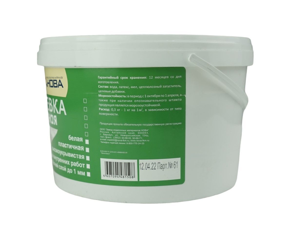Шпатлевка имеет повышенную укрывистость и прочность сцепления с бетоном, ДСП, деревянной, гипсокартонной и оштукатуренной поверхностью. Не имеет запаха. Отличается исключительно белым цветом, что позволяет при покраске зашпатлеванной поверхности снизить расход краски. Шпатлевка проста и удобна в работе. Хорошо ложится на поверхность, не тянется за шпателем. Повышенная адгезия,белая,пластичная,хорошо шлифуется.