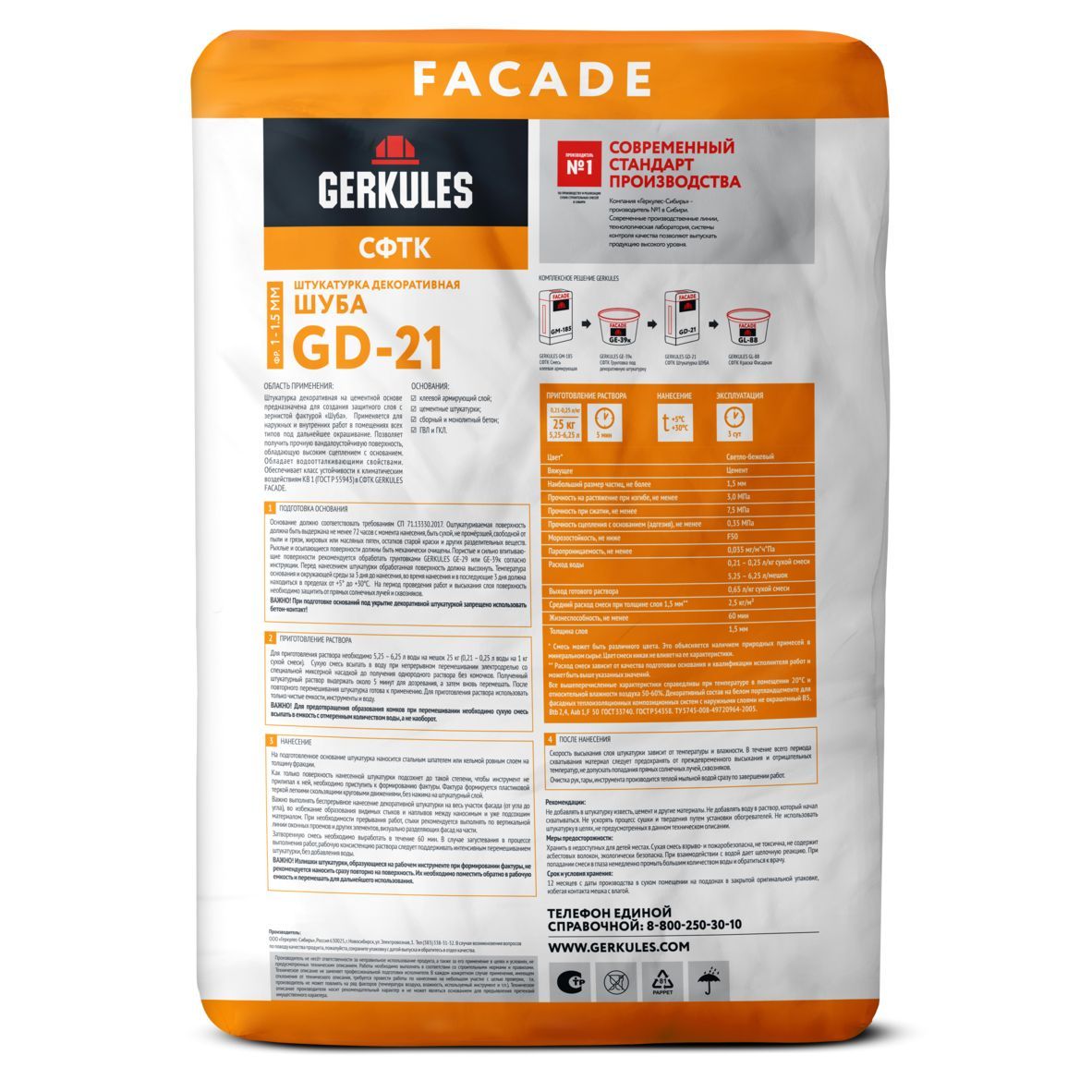 Штукатурка декоративная "Шуба" Геркулес GD-21 (зерно 1,0 - 1,5 мм), 25кг цена - купить в Барнауле, Бийске. Размеры, характеристики, фото в интернет-магазине.