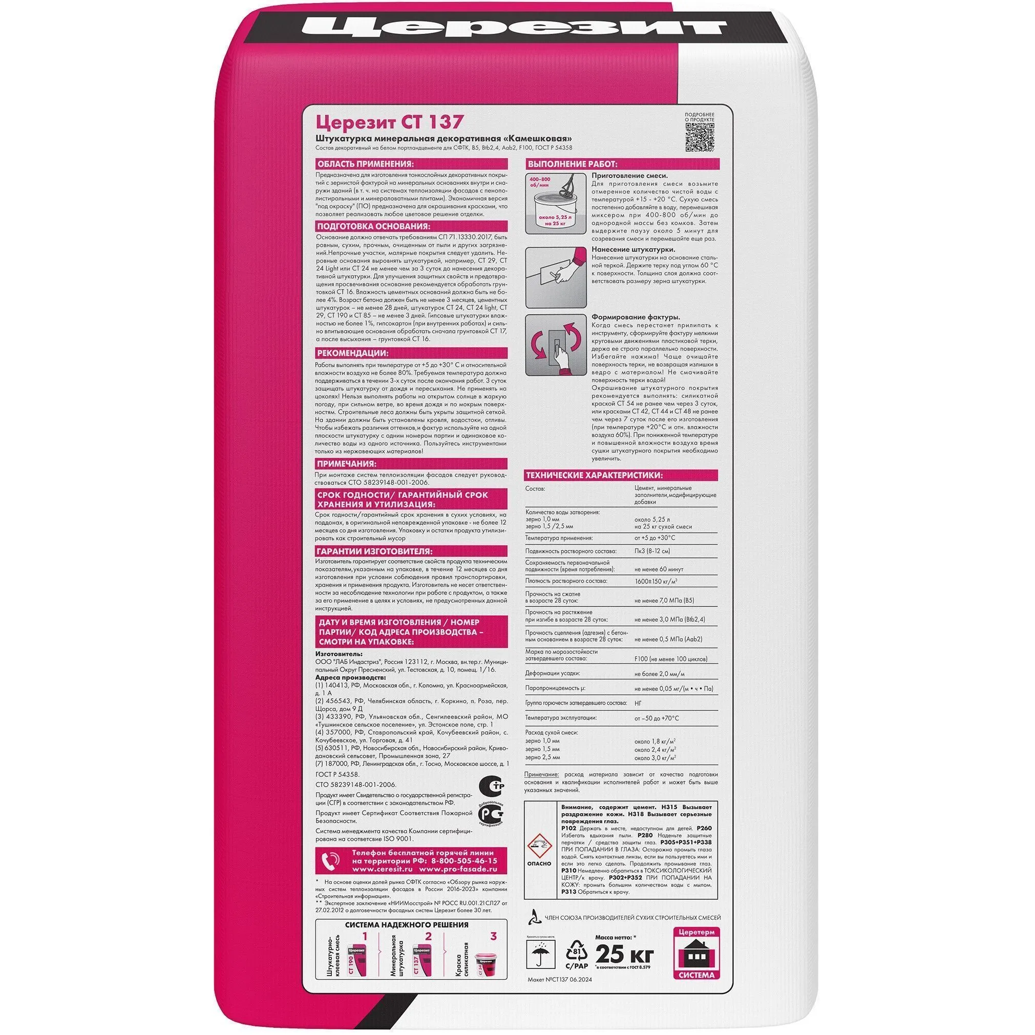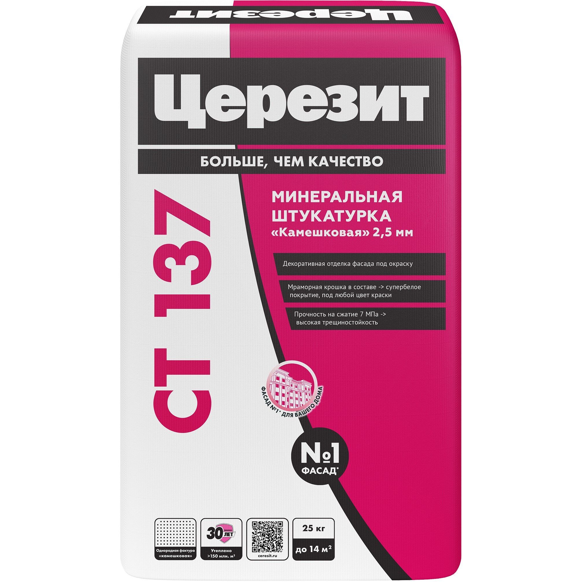 Штукатурка Ceresit Камешковая 2,5 мм СТ 137 минеральная, декоративная 25кг цена - купить в Барнауле, Бийске. Размеры, характеристики, фото в интернет-магазине.