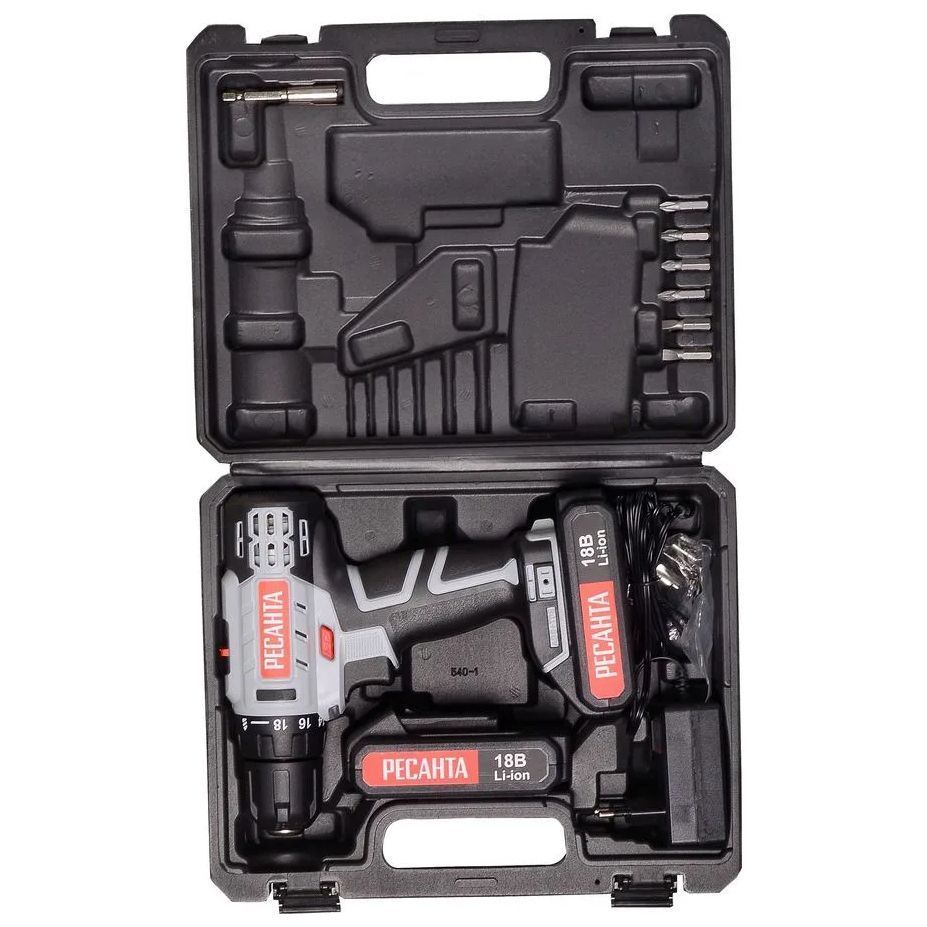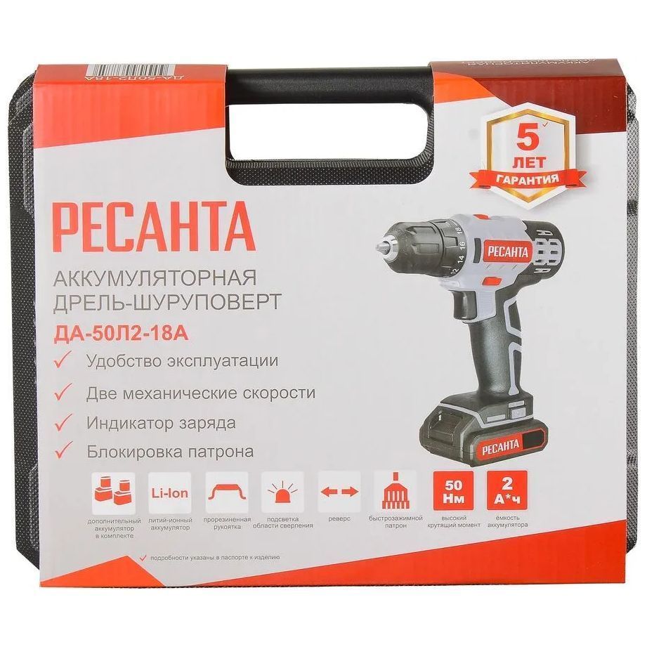 Шуруповерт аккумуляторный Ресанта ДА-50Л2-18А используется для просверливания отверстий в деревянных, пластмассовых и металлических изделиях или для работы в качестве шуруповерта. Модель оснащена 2 аккумуляторами и незаменима для людей, постоянно использующих дрели-шуруповерты в быту. Прорезиненная рукоять обеспечивает удобное и надёжное удержание инструмента в руке во время работы. Быстрозажимной патрон облегчает замену рабочей оснастки. Двухскоростной редуктор для удобства ведения различных работ. Реверсивный механизм предназначен для быстрого изъятия сверла из материала в случае застревания, выкручивания или ослабления крепежа. С помощью регулировки частоты вращения инструмент можно настроить под необходимую толщину материала. Модель работает от надёжного литий-ионного аккумулятора (Li-Ion).