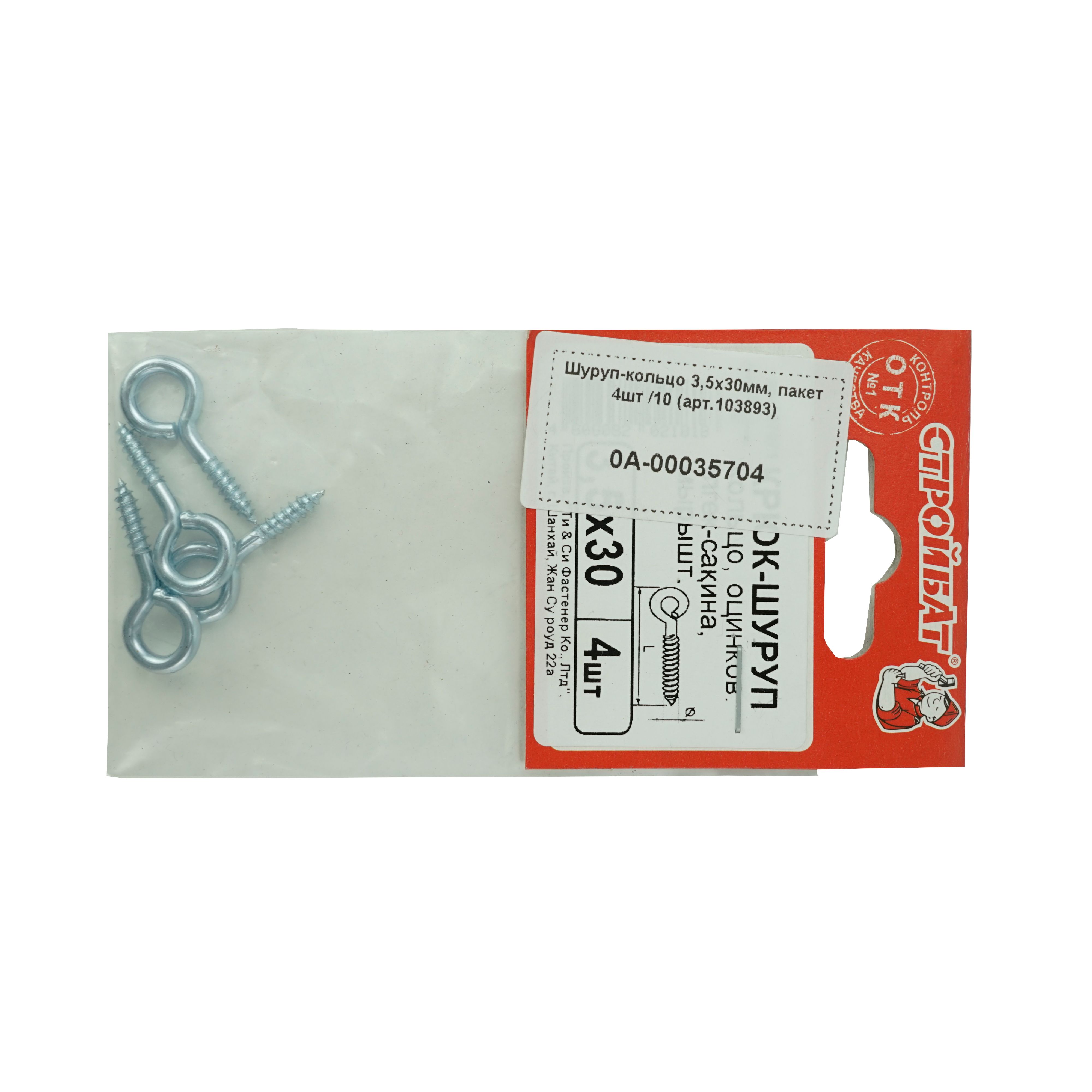 Шуруп-кольцо 3,5х30мм имеет головку в виде сварного кольца, резьбу с крупным шагом и острый наконечник. Сварное соединение предотвращает раскрытие кольца. Шуруп изготовлен из углеродистой стали с антикоррозионным цинковым покрытием.