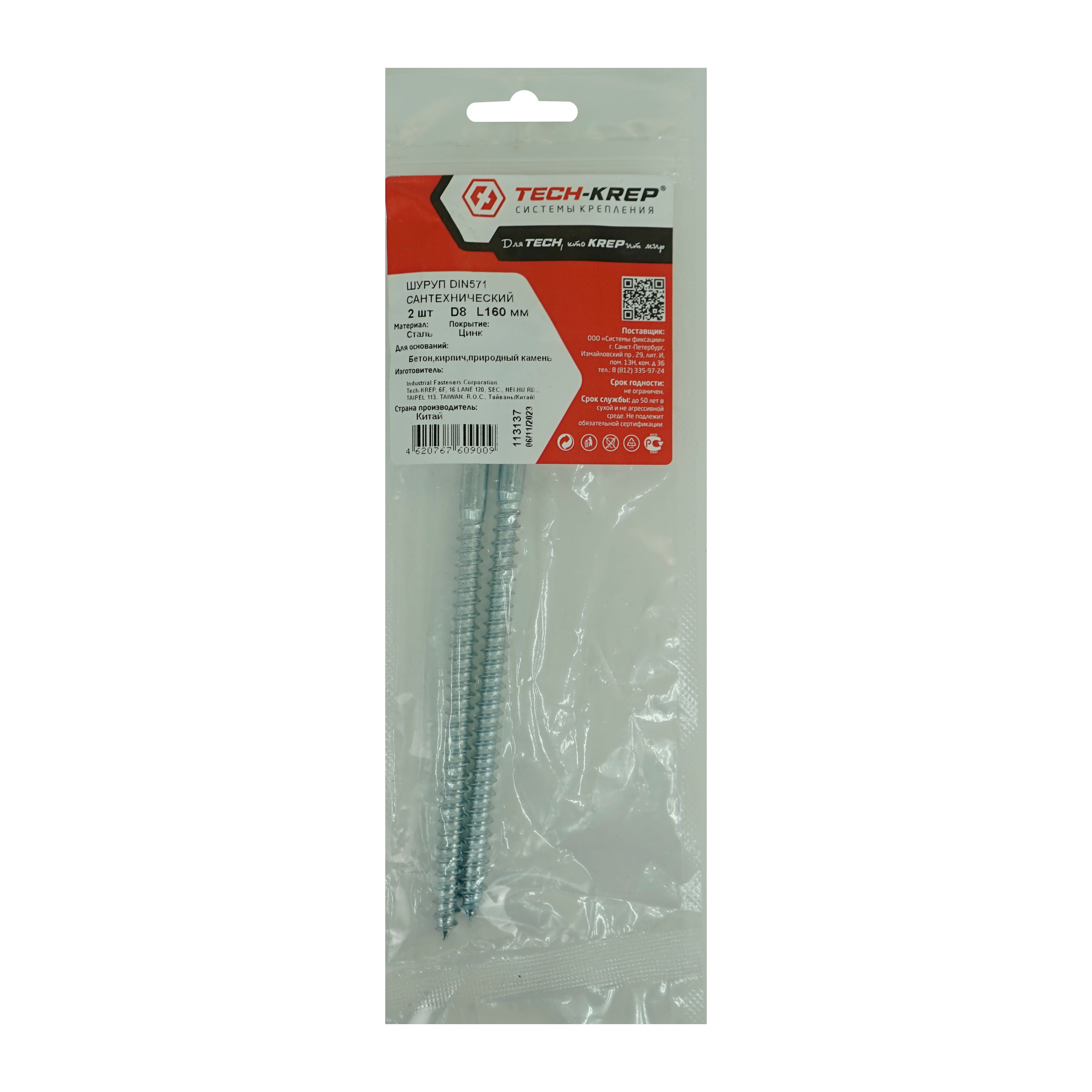 Шуруп сантехнический (глухарь) 8х160мм оцинкованный используется для крепления тяжелых конструкций к деревянному, бетонному или кирпичному основаниям (с использованием пластмассвого дюбеля). Шестигранная форма головки позволяет передать значительный момент при затяжке соединения.