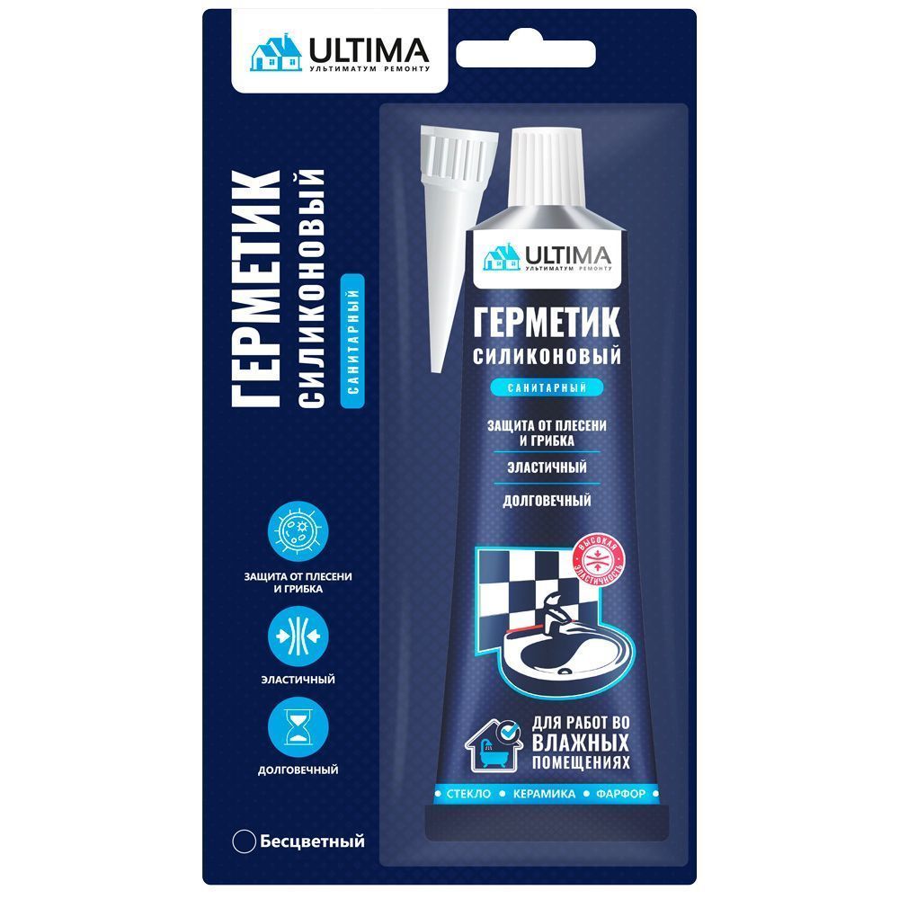 Санитарный кислотный силиконовый герметик с содержанием фунгицидов. Рекомендуется для ванных комнат, кухонь и других помещений с повышенной влажностью. Обладает отличной адгезией к стеклу, керамике, алюминию, окрашенным и лакированным поверхностям.