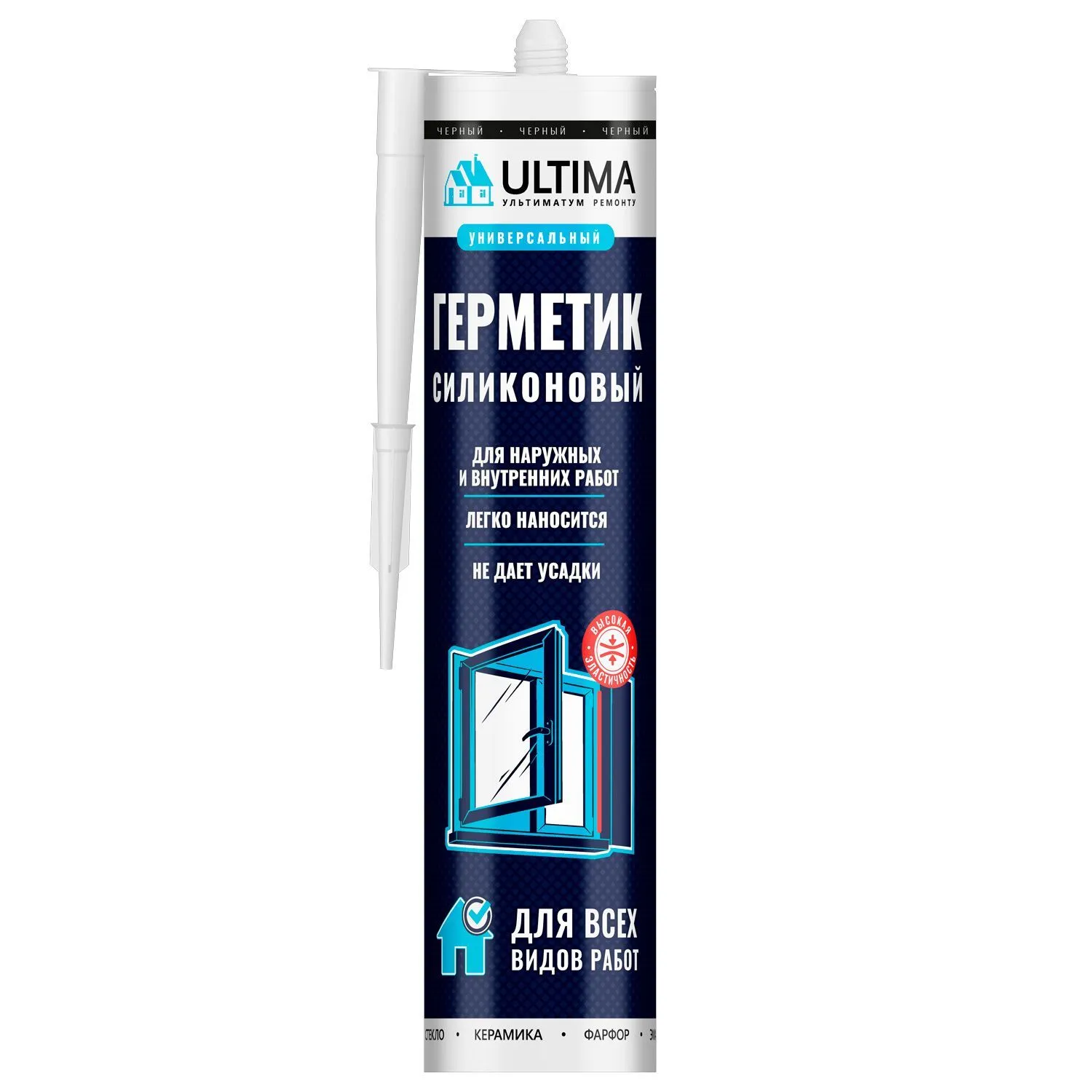 Универсальный силиконовый кислотный герметик ULTIMA Universal Silicone для уплотнения и герметизации стыковых и расширительных соединений во внутренних и наружных бытовых, ремонтных и строительных работах.