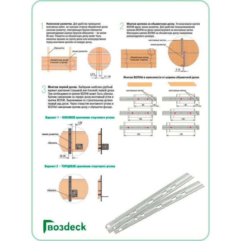 - Волнообразный профиль обеспечивает жесткость крепежа и вентиляцию тыльной стороны доски;