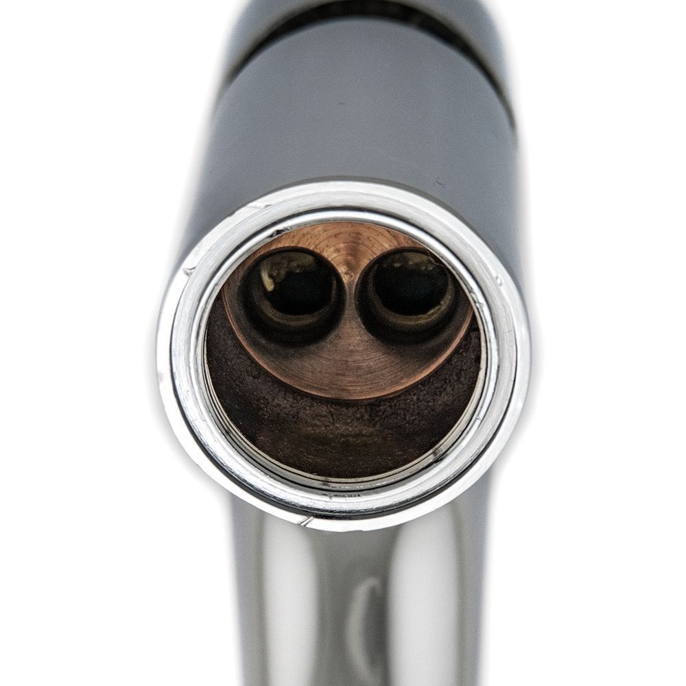 Смеситель премиального сегмента для раковины с креплением на гайке отличается от смесителей более экономного сегмента строгим минималистичным дизайном корпуса и ручки с наличием плоских зеркальных поверхностей. Большая удобная нижняя гайка позволяет легко закрепить смеситель на столешнице или мойке без использования инструментов. В качестве запорной арматуры используется картридж типоразмера 35 мм. Отражатель картриджа - из латуни с никель-хромовым покрытием. Длина излива по осям корпус-аэратор составляет 102 мм. Высота от уровня столешницы до аэратора составляет 87 мм. Максимальная высота смесителя - 145 мм. В комплектацию входит качественная подводка DEVIDA длиной 50 см с оплеткой из фибронейлона. Смеситель оснащен ручкой строгой формы без отверстия на рычаге.