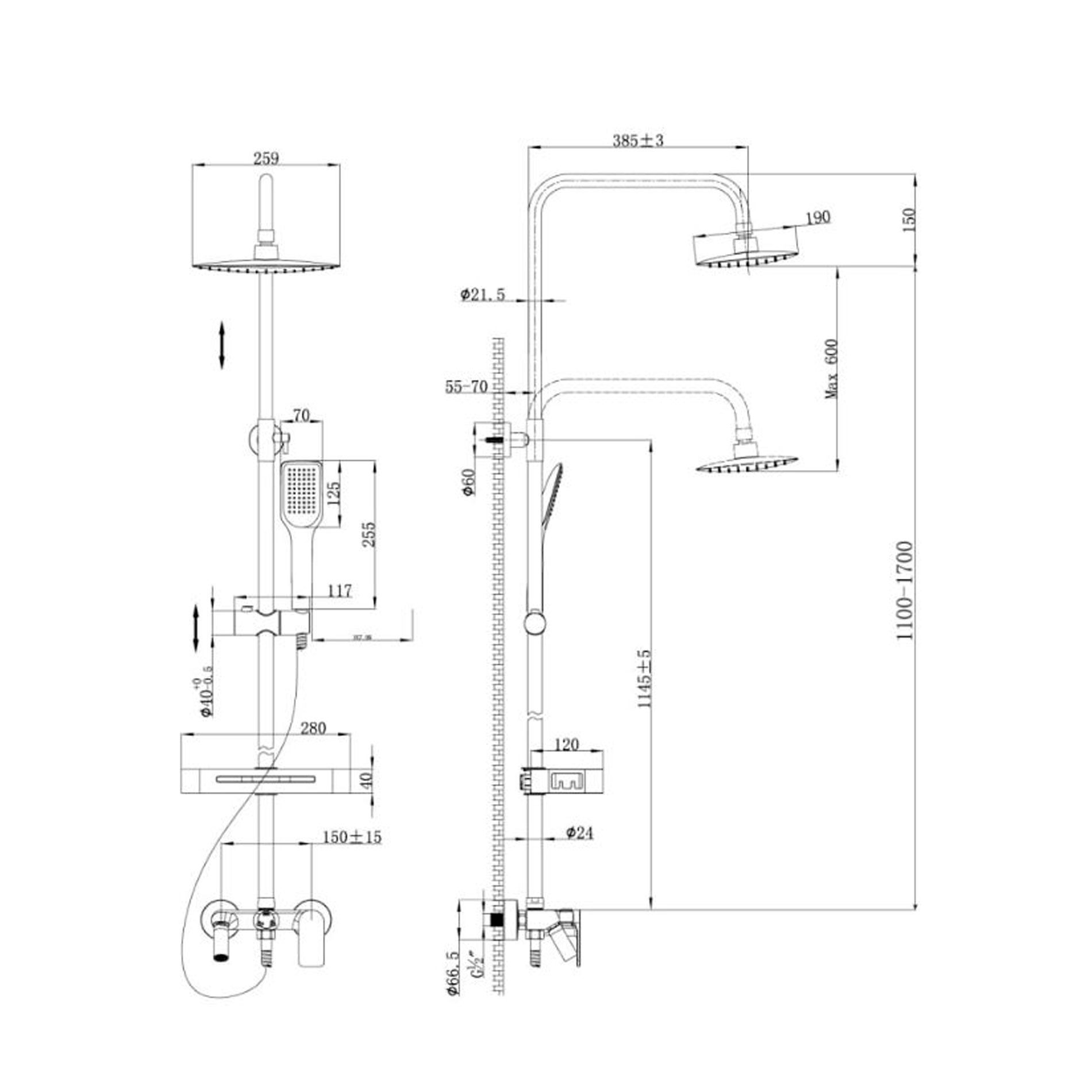 - Регулируемая высота креплений и лейки;