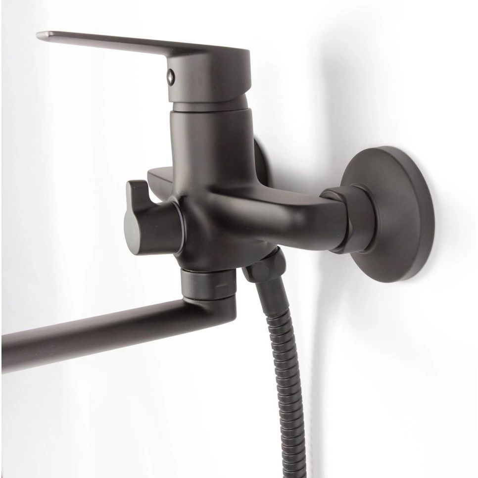 Для серии Dyno сделан выбор в пользу премиальных аксессуаров — в комплект смесителя для ванны включены лейка в современном дизайне с легкой очисткой форсунок Easy Clean, усиленный шланг 1,5 метра, настенный держатель для лейки