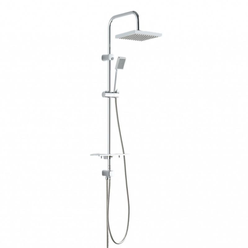 - Душевая система оснащена габаритной полкой — она подойдет как для хранения мыла или мочалки, так и для емкости с гелем для душа или шампуня.
