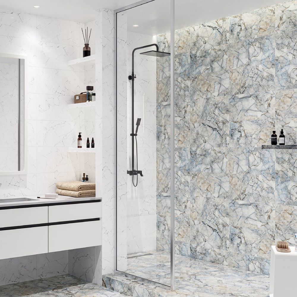Solo – это имитация трендового цветного мрамора с необычным оттенком небесной синевы, который подчеркивается серо-бежевыми включениями, характерными для натурального камня. Особенность структуры этого мрамора – тонкие серые прожилки, многие из которых пересекаются, образуя ломанные и крестообразные линии, придавая поверхности 3D-эффект. В сочетании с белым мрамором коллекция гармонично впишется в современные интерьеры, для которых характерны простор, обилие света и лаконичность.
