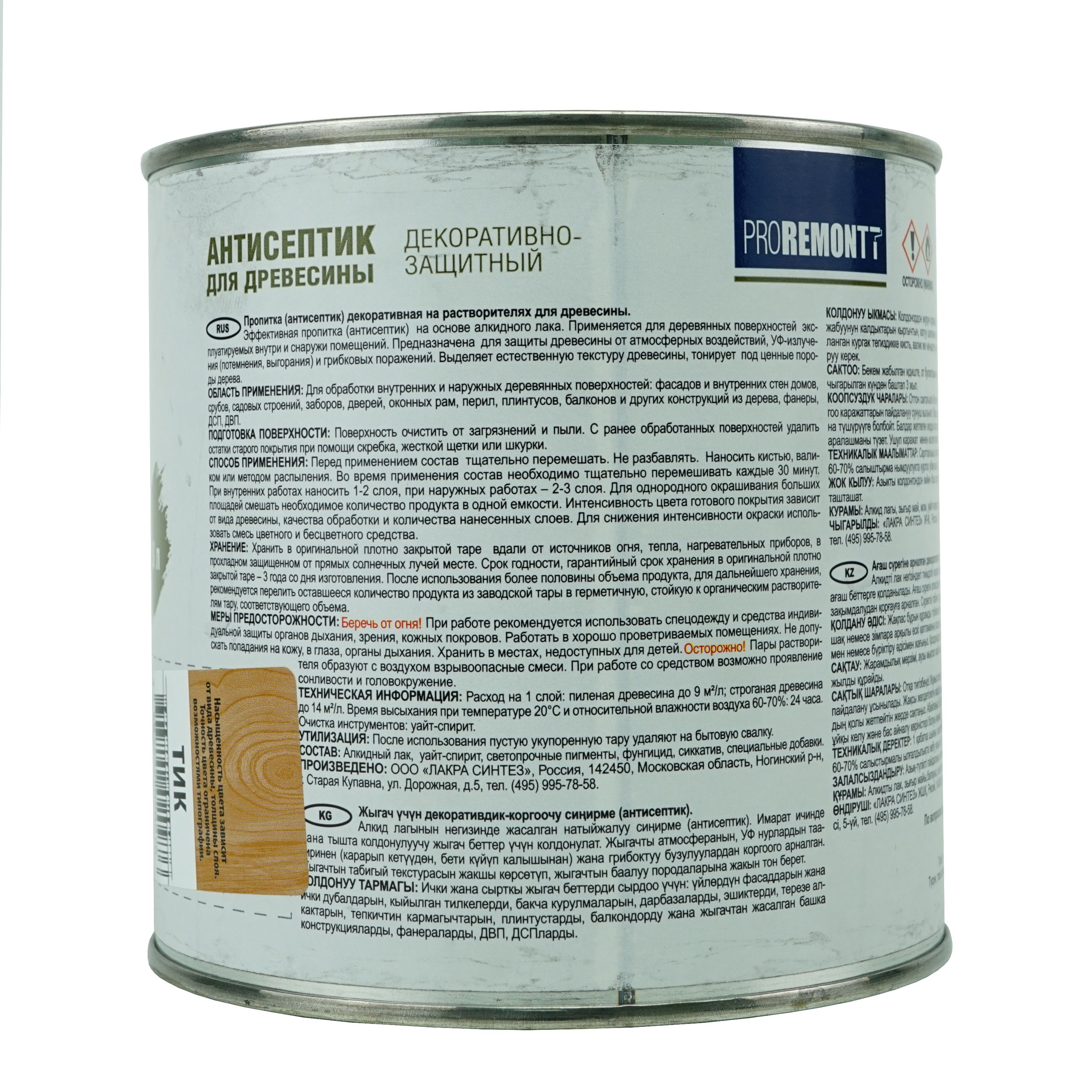 Нанесение: Перед применением состав тщательно перемешать. Не разбавлять. Во время применения состав необходимо тщательно перемешивать каждые 30 минут. При внутренних работах наносить 1-2 слоя, при наружных работах – 2-3 слоя. Для однородного окрашивания больших площадей смешать необходимое количество продукта в одной емкости. Интенсивность цвета готового покрытия зависит от вида древесины, качества обработки и количества нанесенных слоев. Для снижения интенсивности окраски использовать смесь цветного и бесцветного средства.