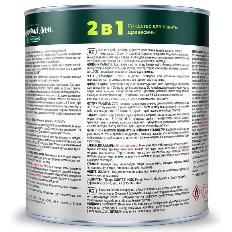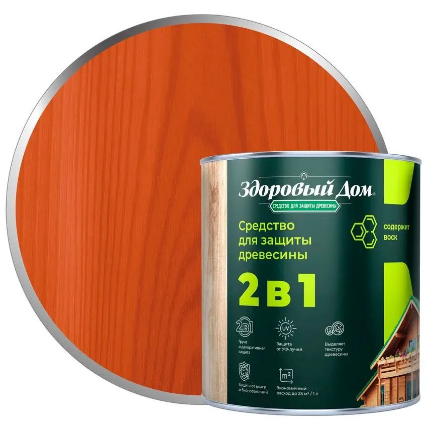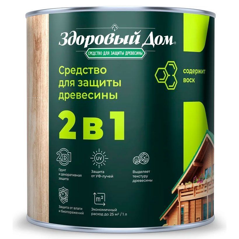 Состав деревозащитный Здоровый дом алкидный. Высокоэффективное средство для защитно-декоративной отделки древесины. Образует полупрозрачное полуматовое покрытие, стойкое к влаге, УФ-излучению, перепадам температуры и другим атмосферным воздействиям.