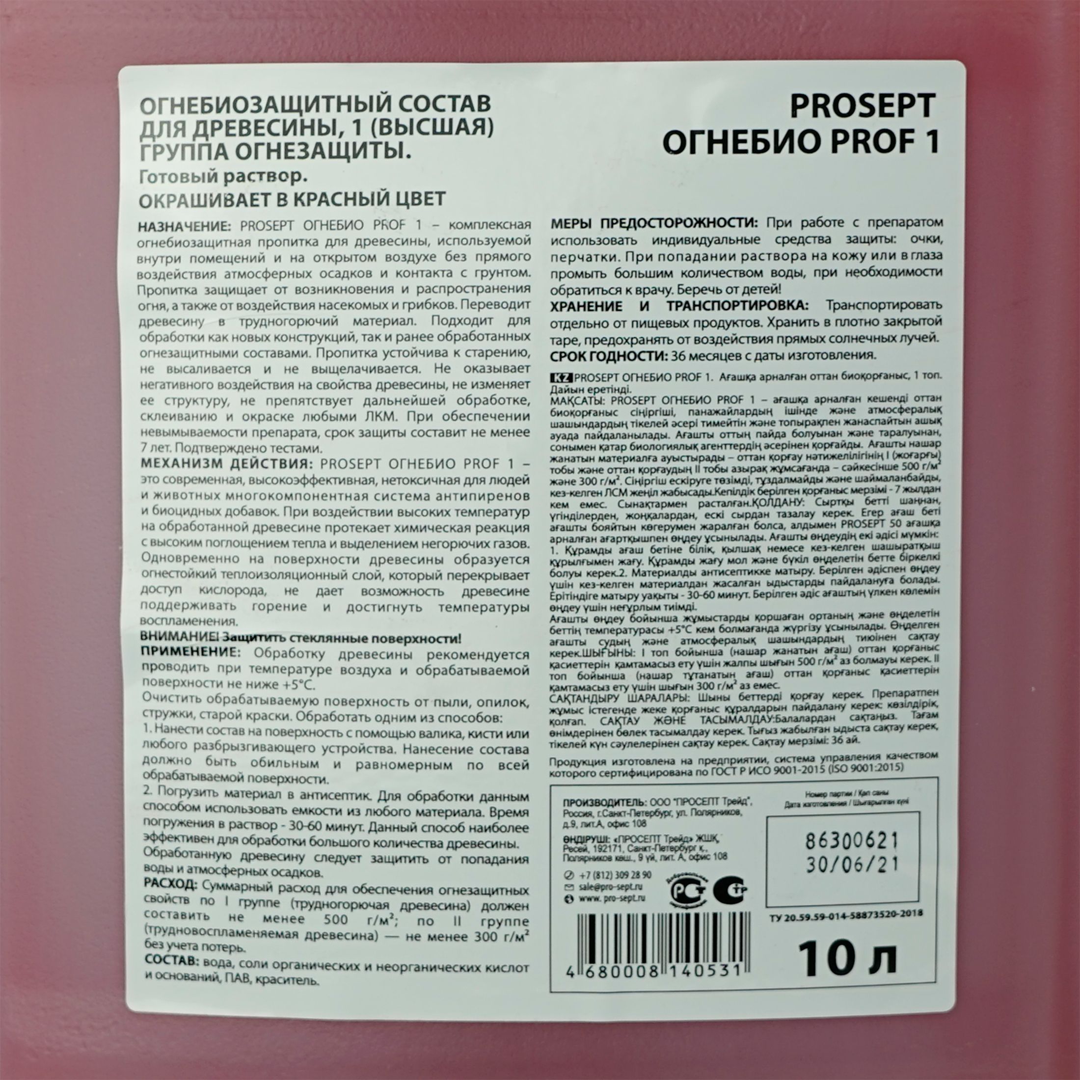 Комплексная огнебиозащитная пропитка высшей группы с биоцидами для древесины. Переводит древесину в трудногорючий материал (I группа огнезащитной эффективности по НПБ 251-99 и II группа огнезащиты по НПБ 251-98) уже при расходе 300 г/м². Окрашивает обрабатываемый материал в красный цвет.