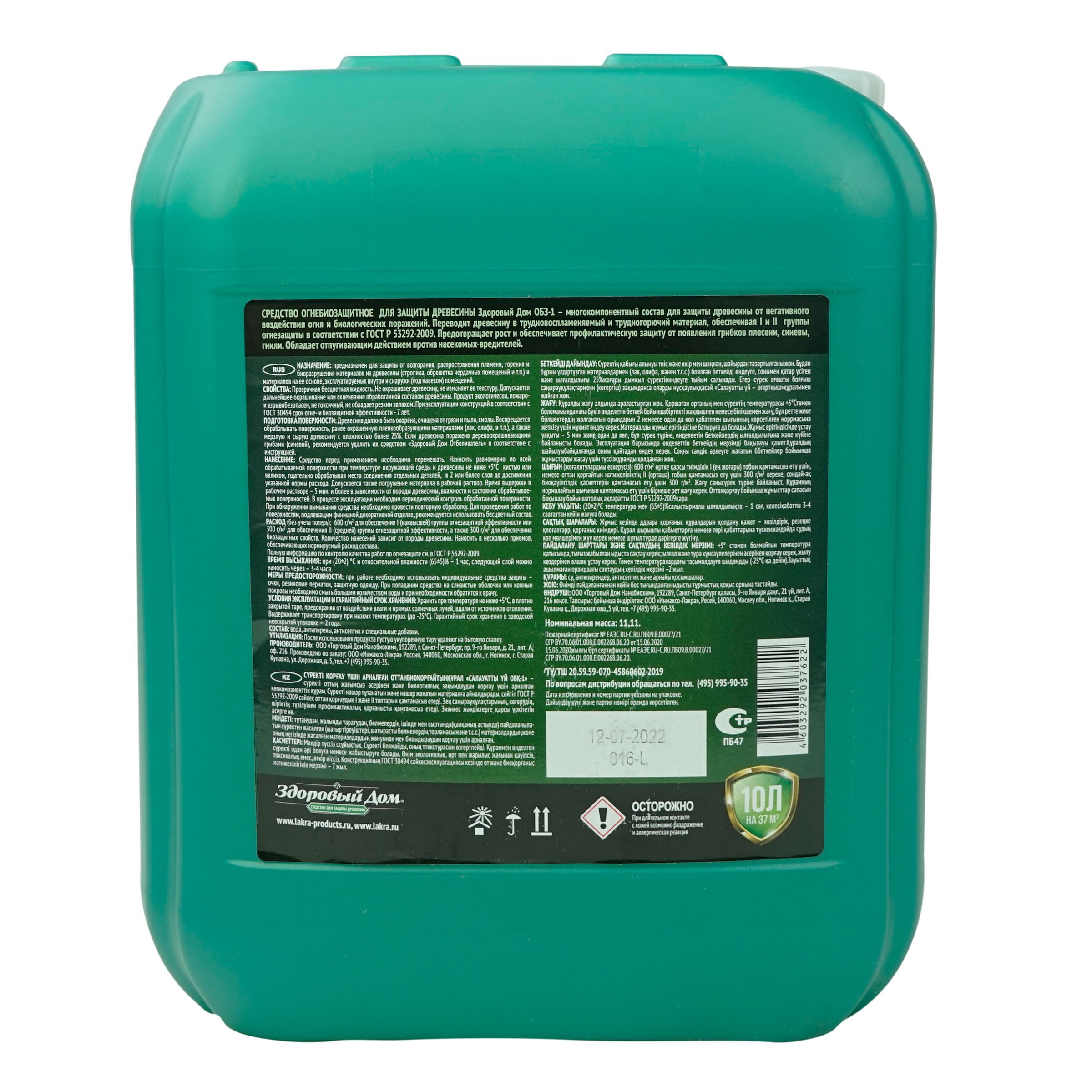 Состав огнебиозащитный для защиты древесины от воздействия огня и грибков с индикатором нанесения. Состав переводит древесину в трудновоспламеняемый и трудногорючий материал.