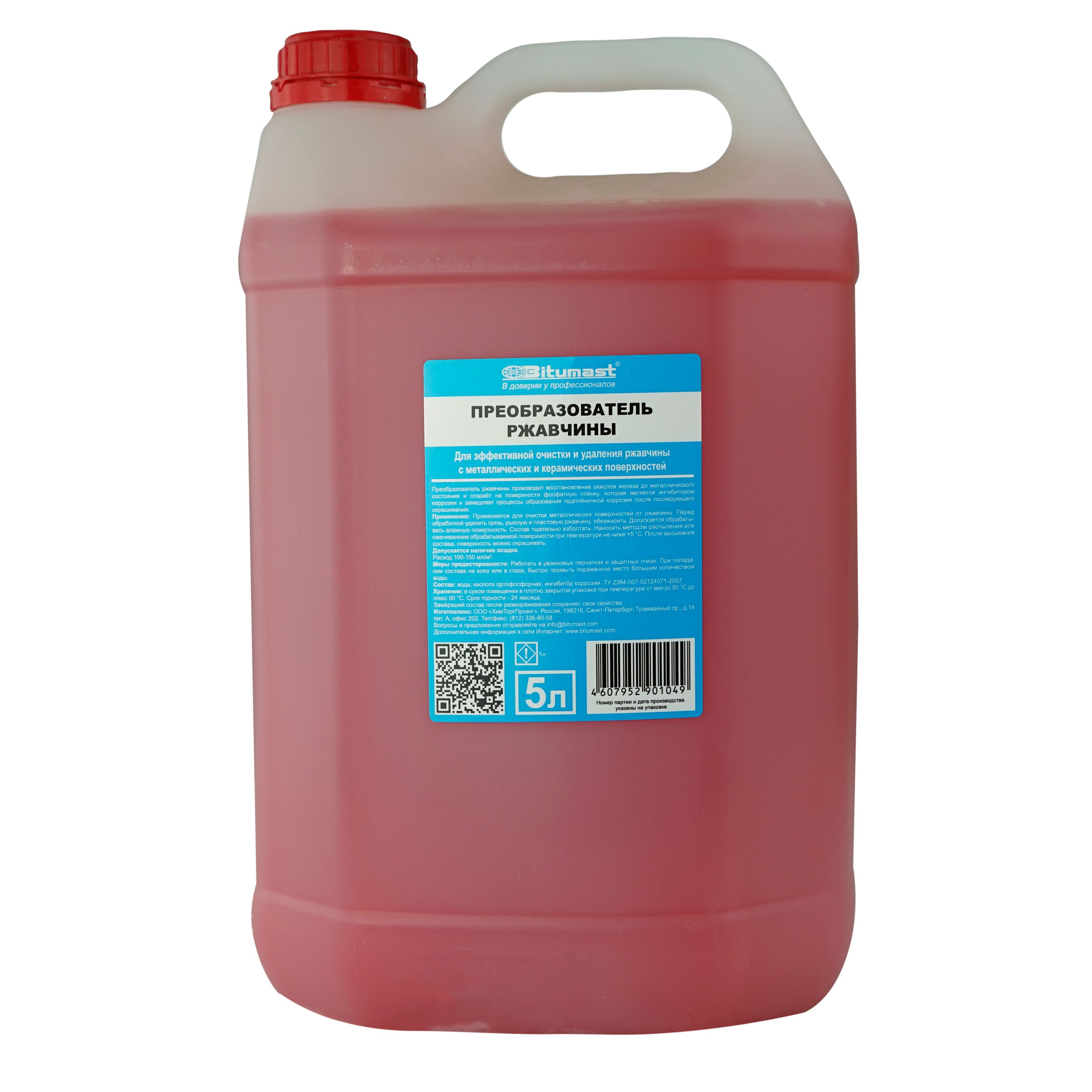 Преобразователь ржавчины Bitumast производит восстановление окислов железа до металлического состояния и создает на поверхности фосфатную пленку, которая является ингибитором коррозии и замедляет процессы образования подпленочной коррозии после последующего окрашивания.