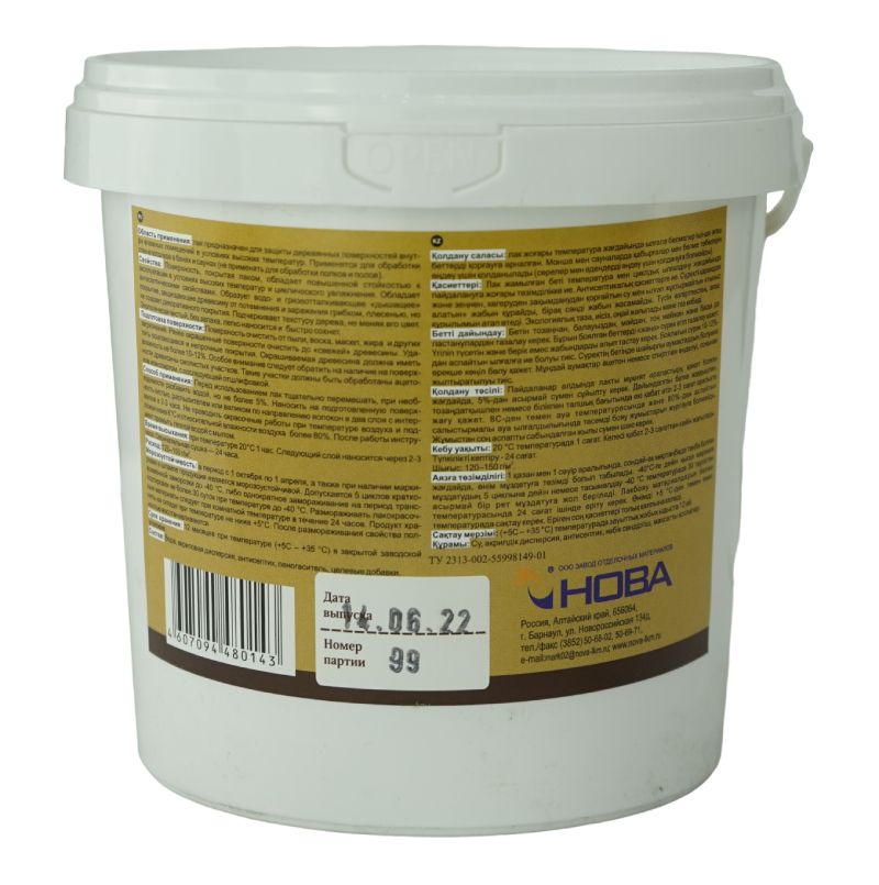 Термоустойчивый лак от бренда НОВА предназначен для декоративной отделки и защиты деревянных поверхностей внутри бань и саун. Лак обладает высокой адгезией, легко наносится, выдерживает многократную влажную уборку с применением бытовых моющих средств. Образует эластичное паропроницаемое покрытие с повышенной устойчивостью к нестабильному температурному режиму и циклическому повышению влажности.