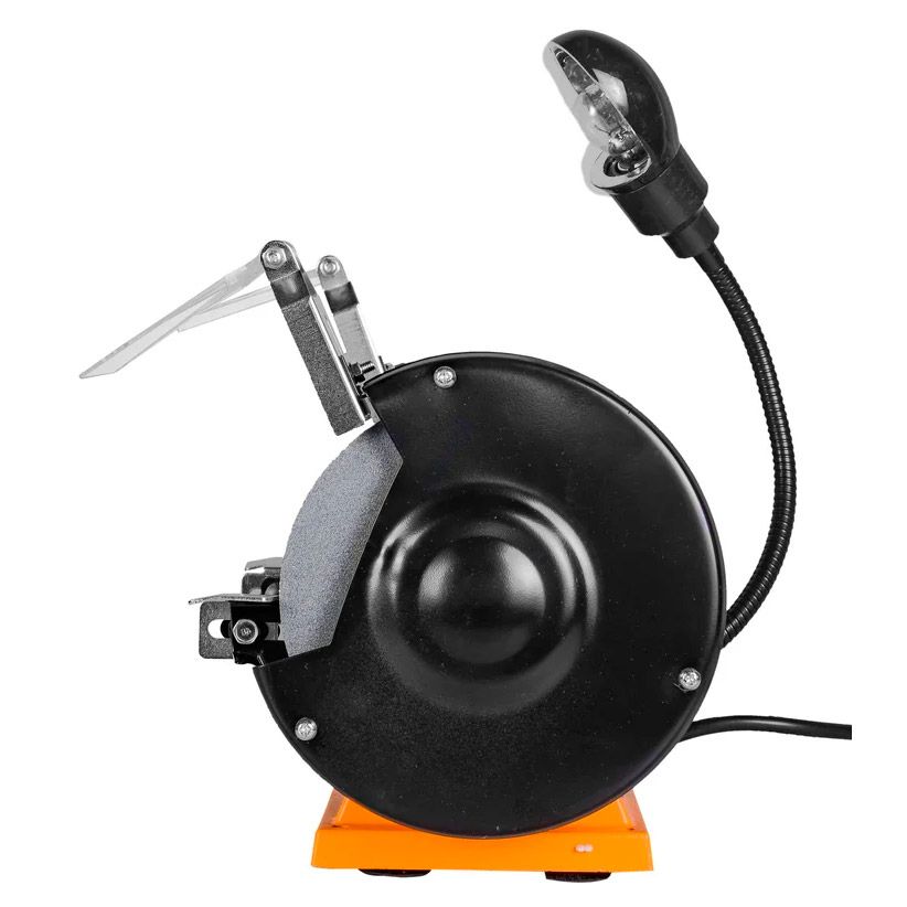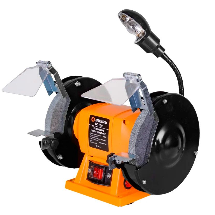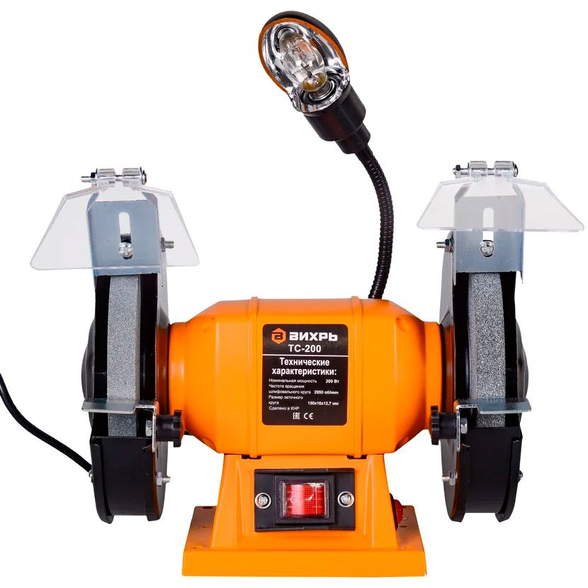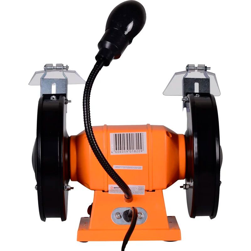 Точильный станок – это простой в использовании и универсальный электроинструмент, который работает от привода электрического мотора мощностью 200 Вт. Основное предназначение – заточка режущего инструмента с ровным лезвием, в том числе ножей, стамесок и пр. Точильный станок имеет продуманную конструкцию. В инструменте используется асинхронный электродвигатель, применение которого помогает уменьшить вибрации во время работы. Для работы могут использоваться шлифовальные круги размером 150х16 мм. Вращаются круги с частотой 2950 об./мин. Рекомендуется устанавливать круги с разной зернистостью.