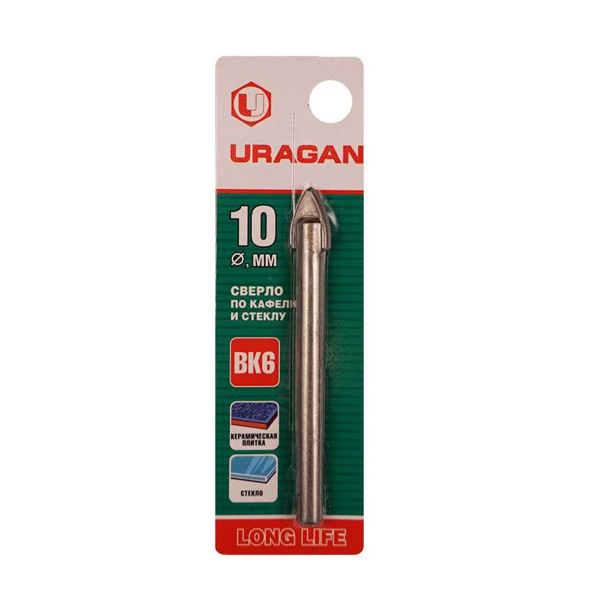 Сверла по кафелю и стеклу Uragan - надежный и проверенный инструмент высокого качества. Сверла предназначены для сверления отверстий в стекле, керамической и кафельной плитке.
