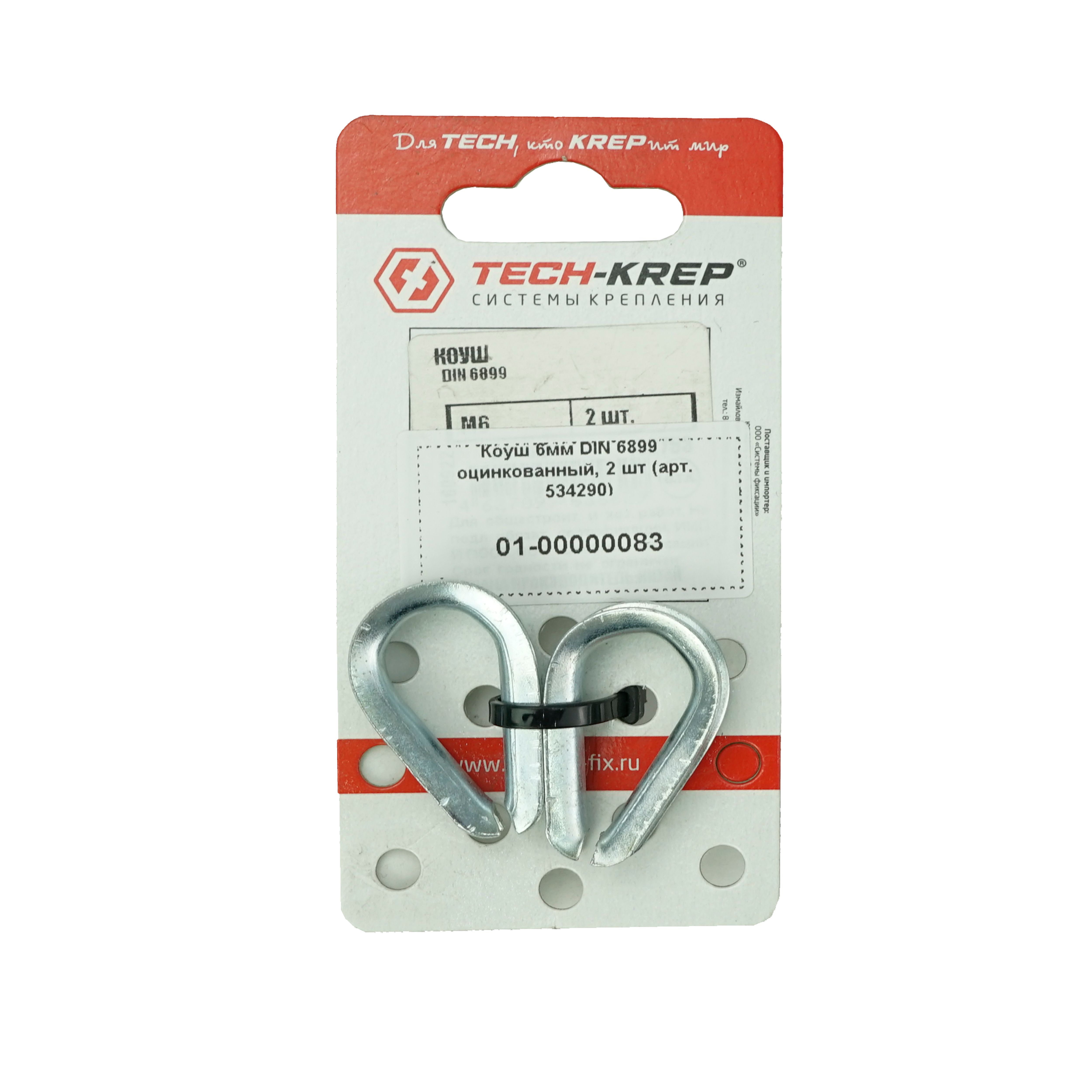 Изделия Коуш предназначен для установки на канат при изготовлении петли на его конце. Предохраняет канат от перетирания, делает петлю более плавной. Широко используется в грузоподъемных устройствах. DIN 6899 может быть установлен как на стальные, так и на растительные и синтетические канаты.