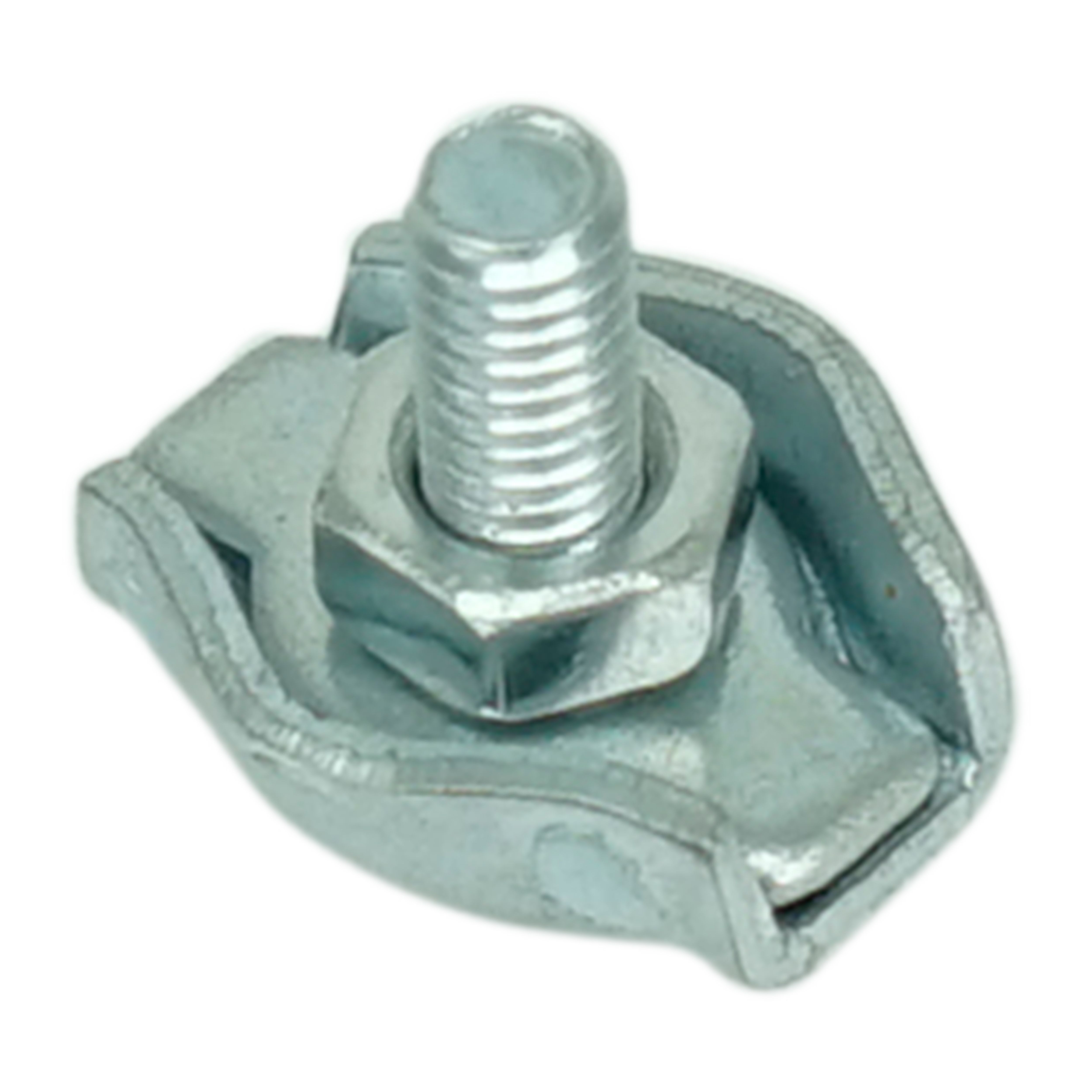 Зажим для троса одинарный C-SWR (Simplex) состоит из следующих элементов: пластина с изогнутыми краями, которая служит основанием, приваренный к пластине-основанию винт с метрической резьбой, прижимная пластина и шестигранная гайка. Зажим изготовлен из углеродистой стали с антикоррозионным цинковым покрытием.