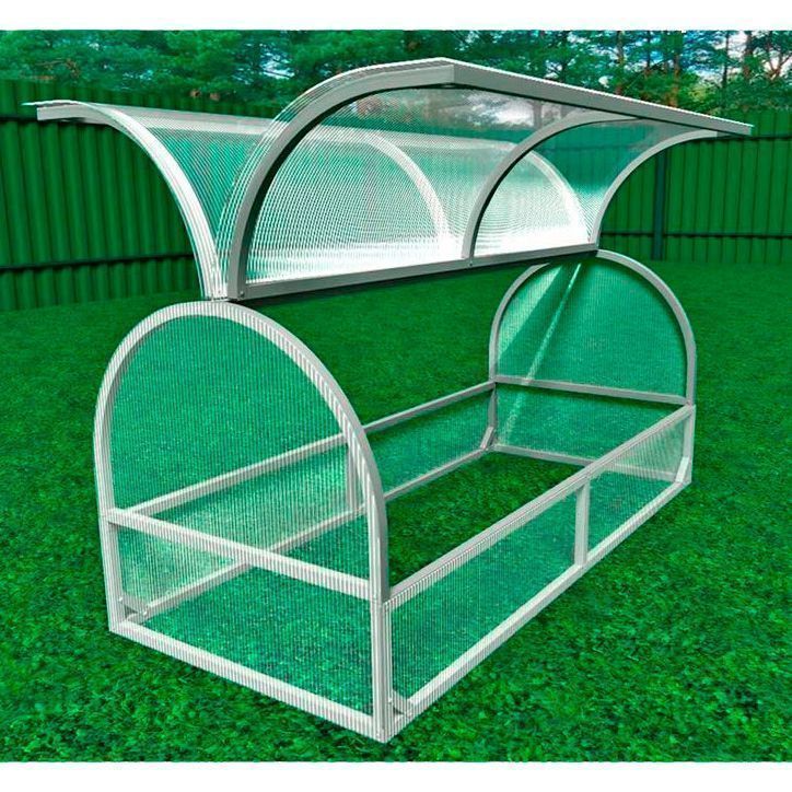 - Рациональное использование площади. Внутри отсутствуют проходы, доступ к растениям — через открывающиеся рамы, что даёт возможность использовать с пользой все пространство теплицы;
