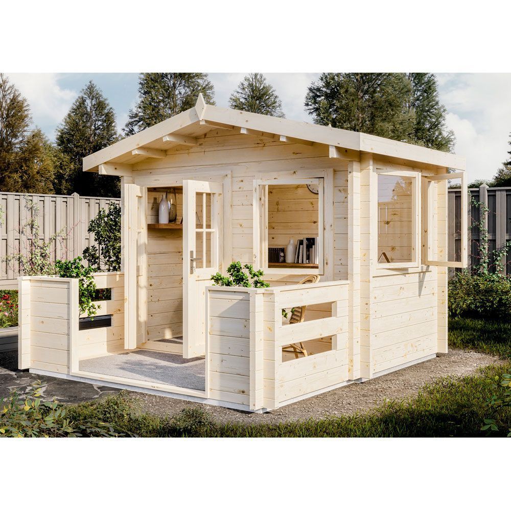Все постройки изготовлены из экологически чистого строганного профилированного мини-бруса камерной сушки, который отличается стабильным качеством и долговечностью. Брус обработан с четырех сторон. Две плоскости — видовые (гладкие), а две отфрезерованы в виде 2-замкового паза, для надежного плотного соединения между собой в вертикальную стену. В стеновых элементах и балках крыши присутствуют «чашки» — конструктивный элемент соединения на углах.