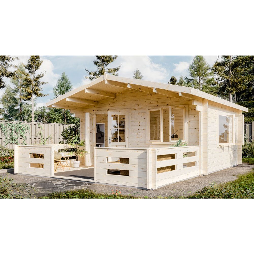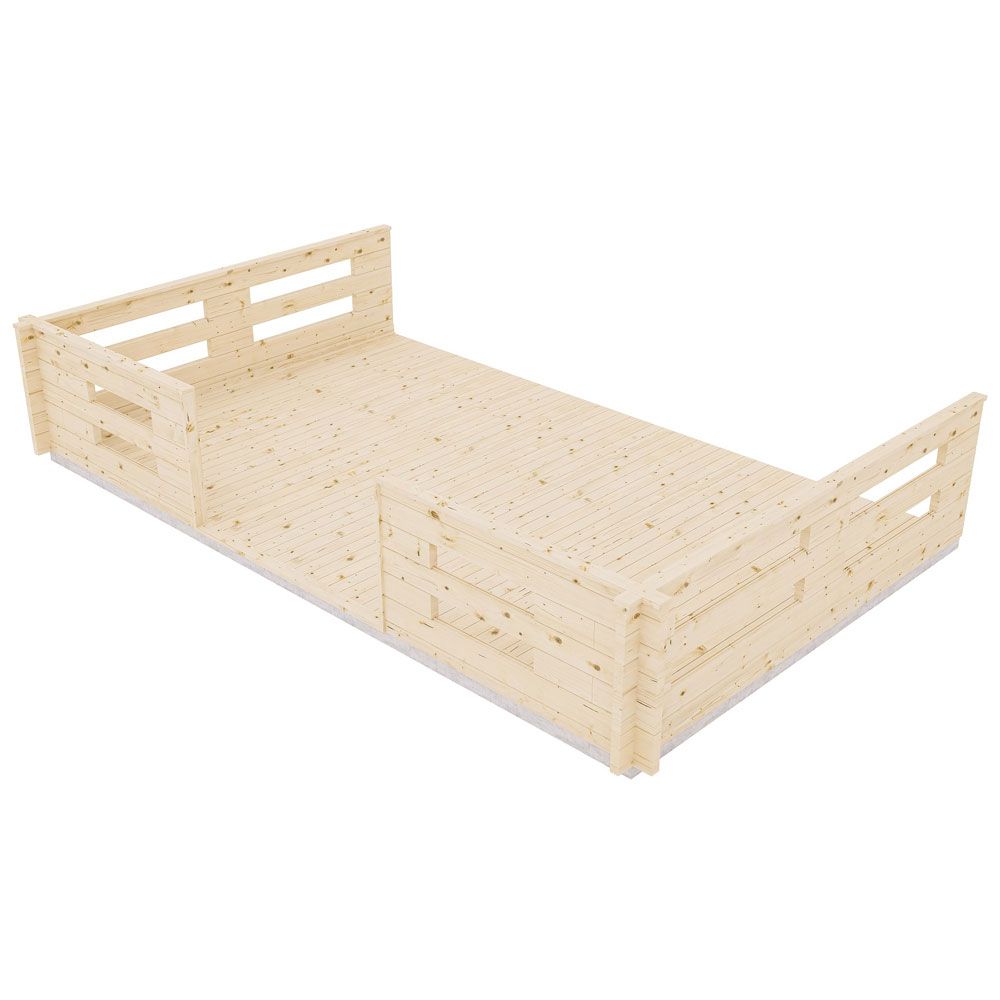 Прямая терраса шириной 3 м станет идеальным решением для расширения пространства. Площадь террасы предоставляет дополнительные места для размещения декоративных элементов или создания обеденной зоны. Подходит к садовым домам с длиной по центральному фасаду 3 м. Конструктив ограждения с проветриванием и допуском солнечного света. Напольное покрытие выполнено из террасной доски 30х142 мм с профилем «Вельвет».