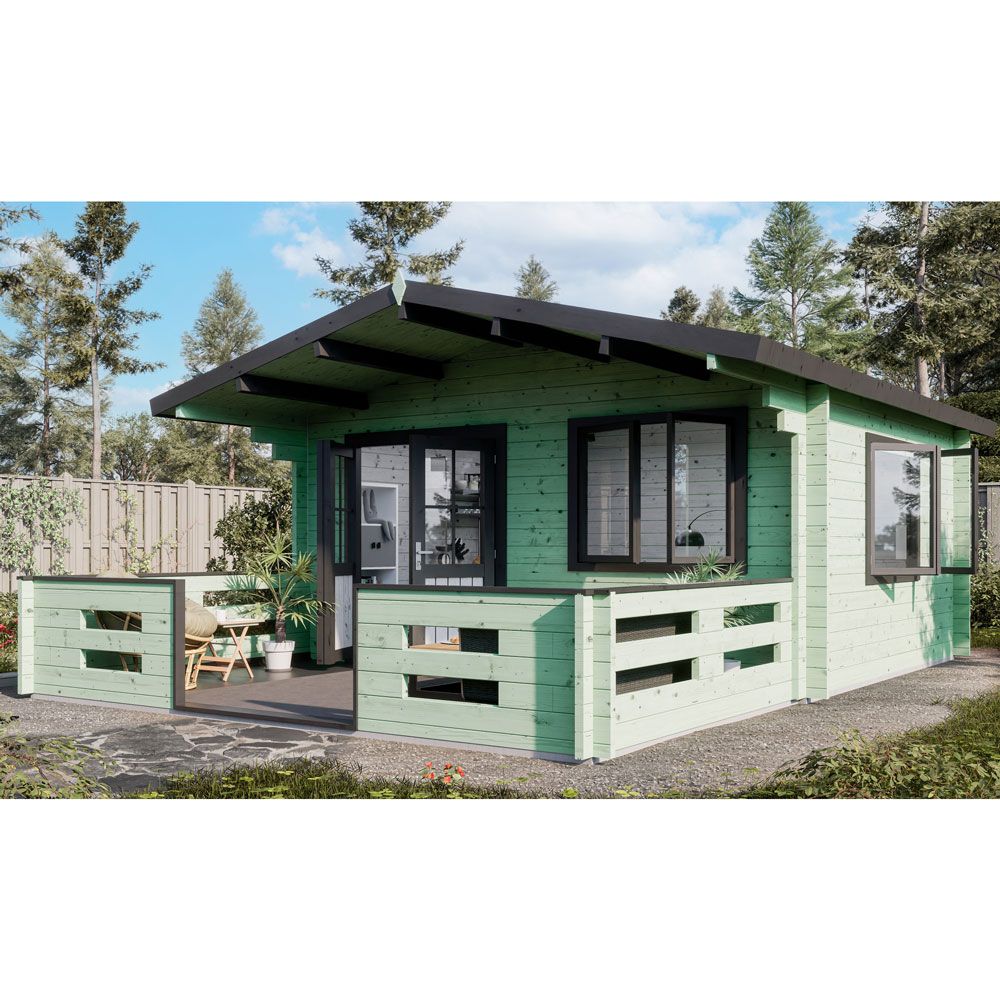 Прямая терраса шириной 3 м станет идеальным решением для расширения пространства. Площадь террасы предоставляет дополнительные места для размещения декоративных элементов или создания обеденной зоны. Подходит к садовым домам с длиной по центральному фасаду 4 м. Конструктив ограждения с проветриванием и допуском солнечного света. Напольное покрытие выполнено из террасной доски 30х142 мм с профилем «Вельвет».