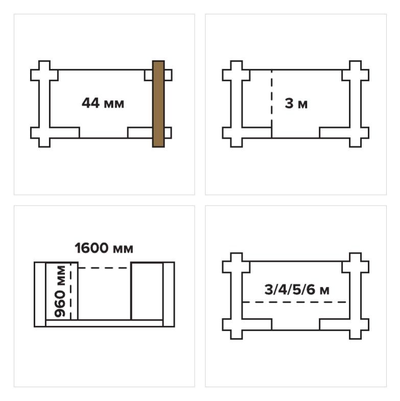 Стеновой брус, доска пола, фундаментная балка, плинтус, поручень.