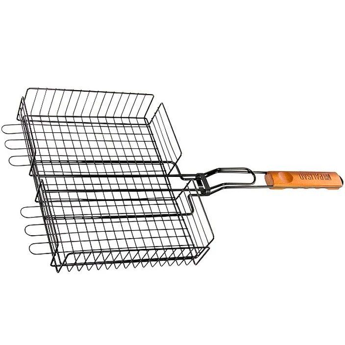 - За счет увеличенных опорных стержней решетка надежно фиксируется на мангале, а для жарки используется вся рабочая площадь;