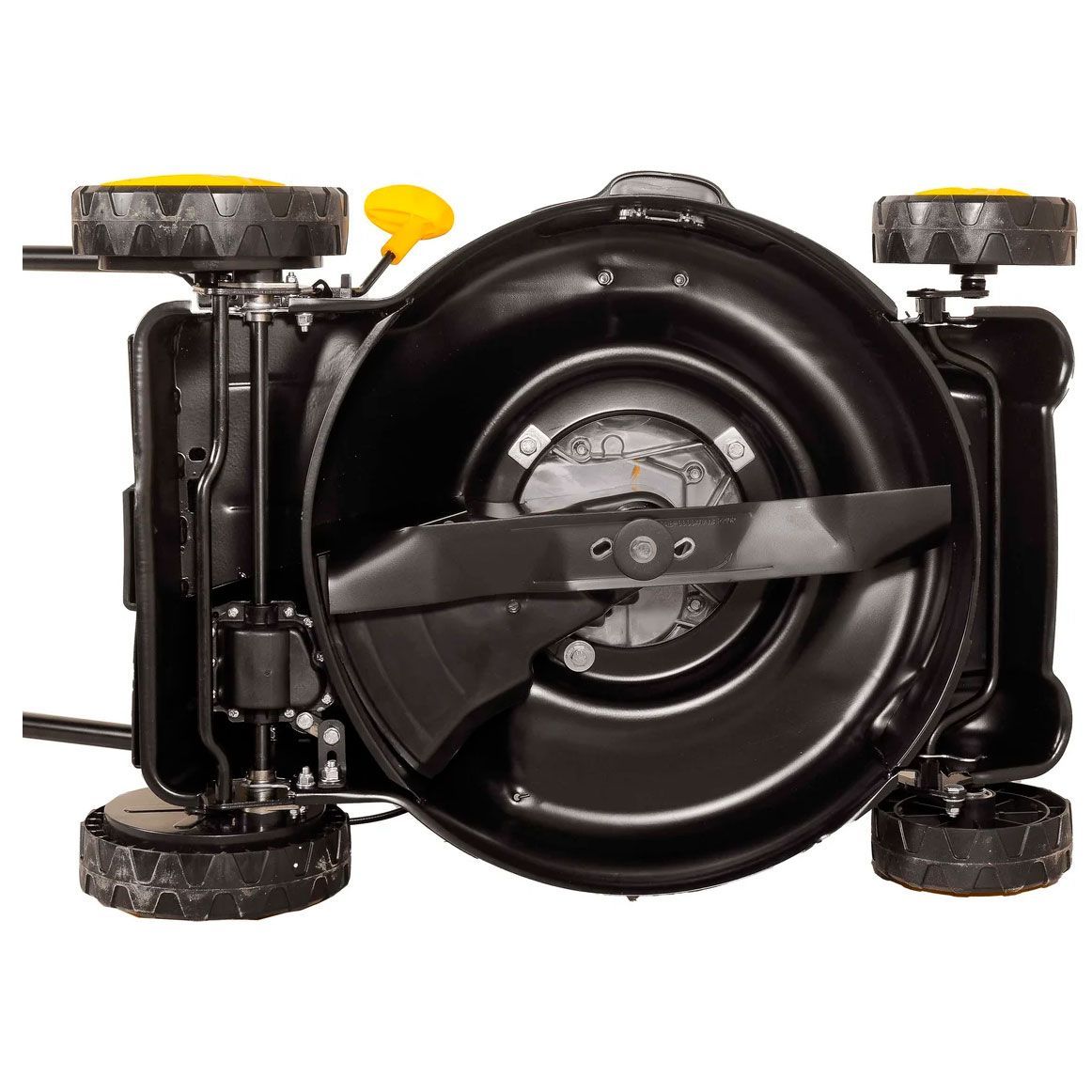- Корпус бензиновой газонокосилки изготовлен из металла и окрашен. Это обеспечивает устройству защиту от механических повреждений при случайном попадании камней и от коррозии;
