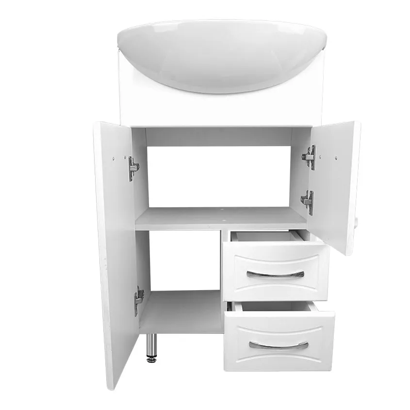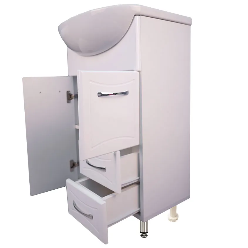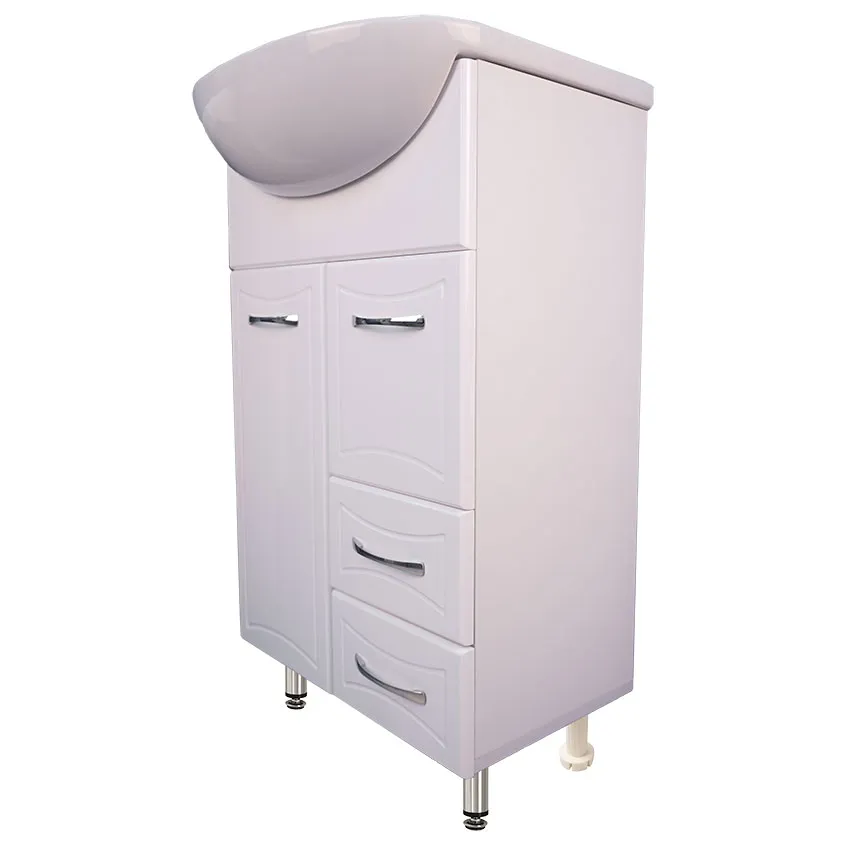Тумба София-50 под умывальник Уют с одной распашной дверцей и тремя выдвижными ящиками. Скромная тумба белого цвета идеально впишется в небольшую ванную в светлых тонах. Дизайн изделия прост, лишен особой вычурности и тем более привлекателен для интерьеров в стиле минимализма.