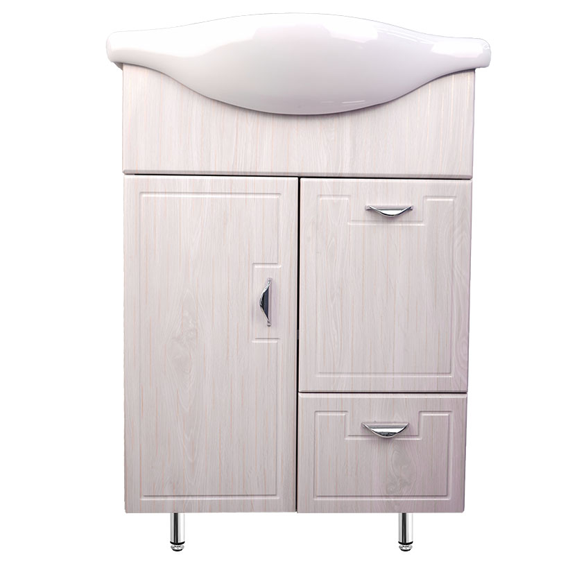 Тумба Миа-60 под умывальник Элегия с одной распашной дверцей и двумя выдвижными ящиками.