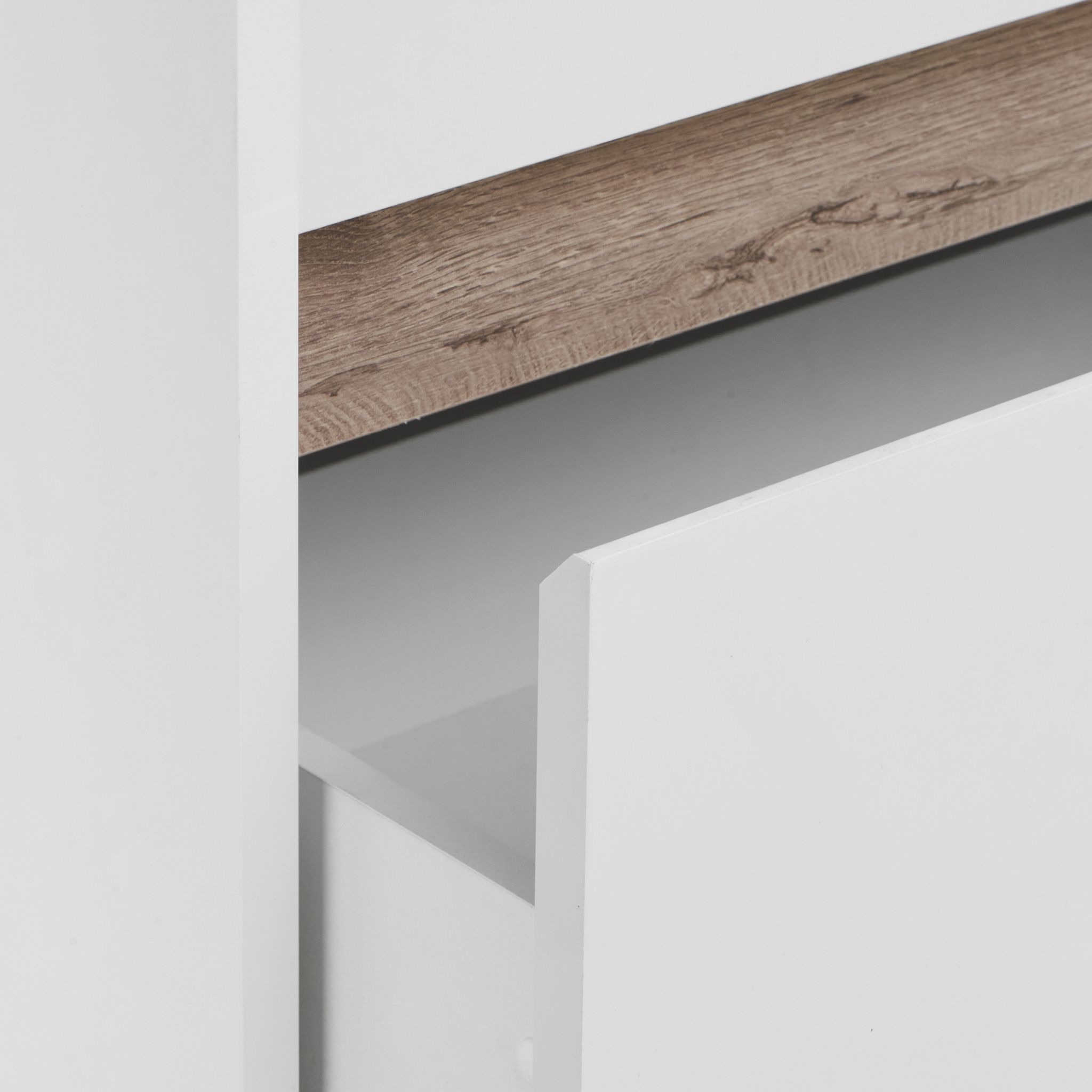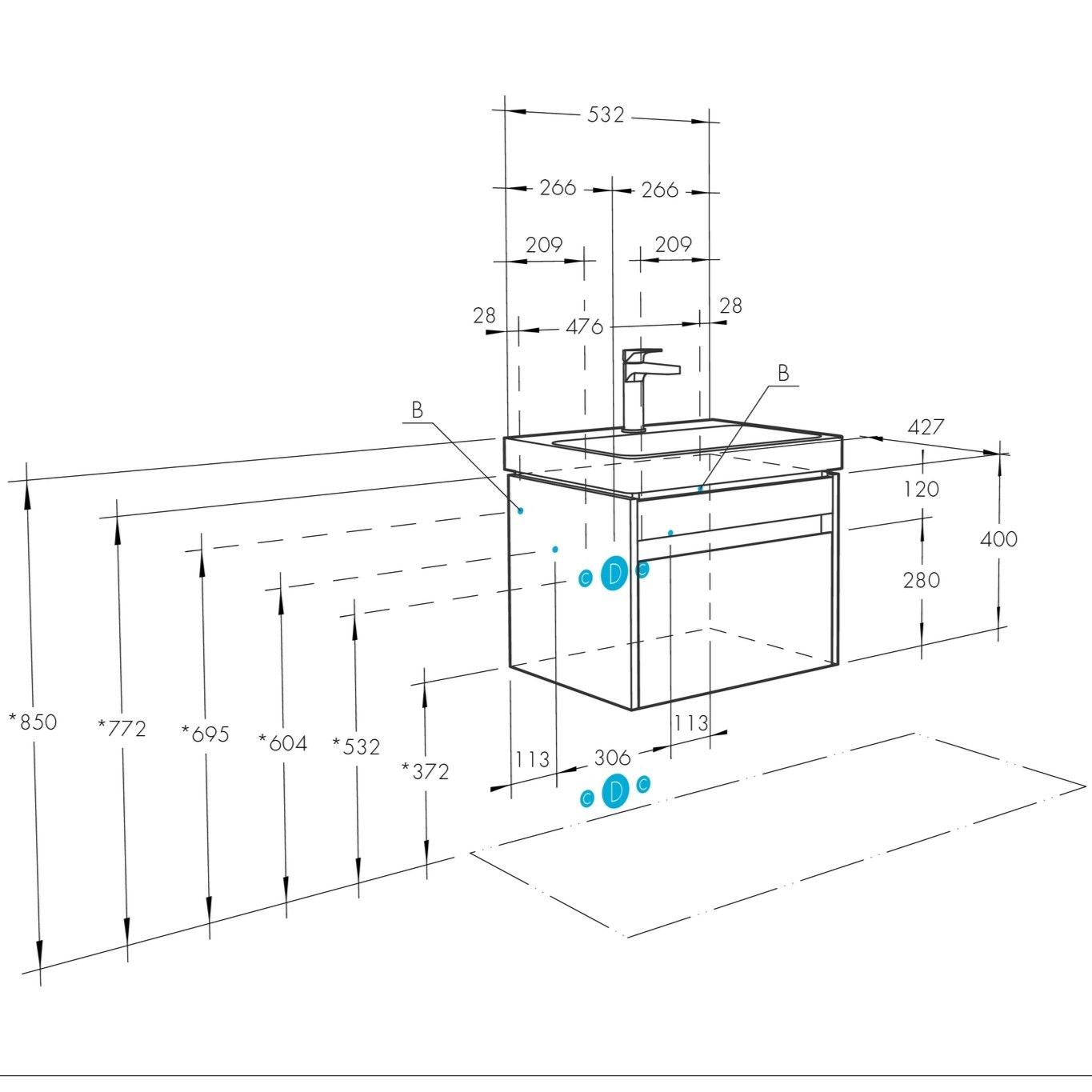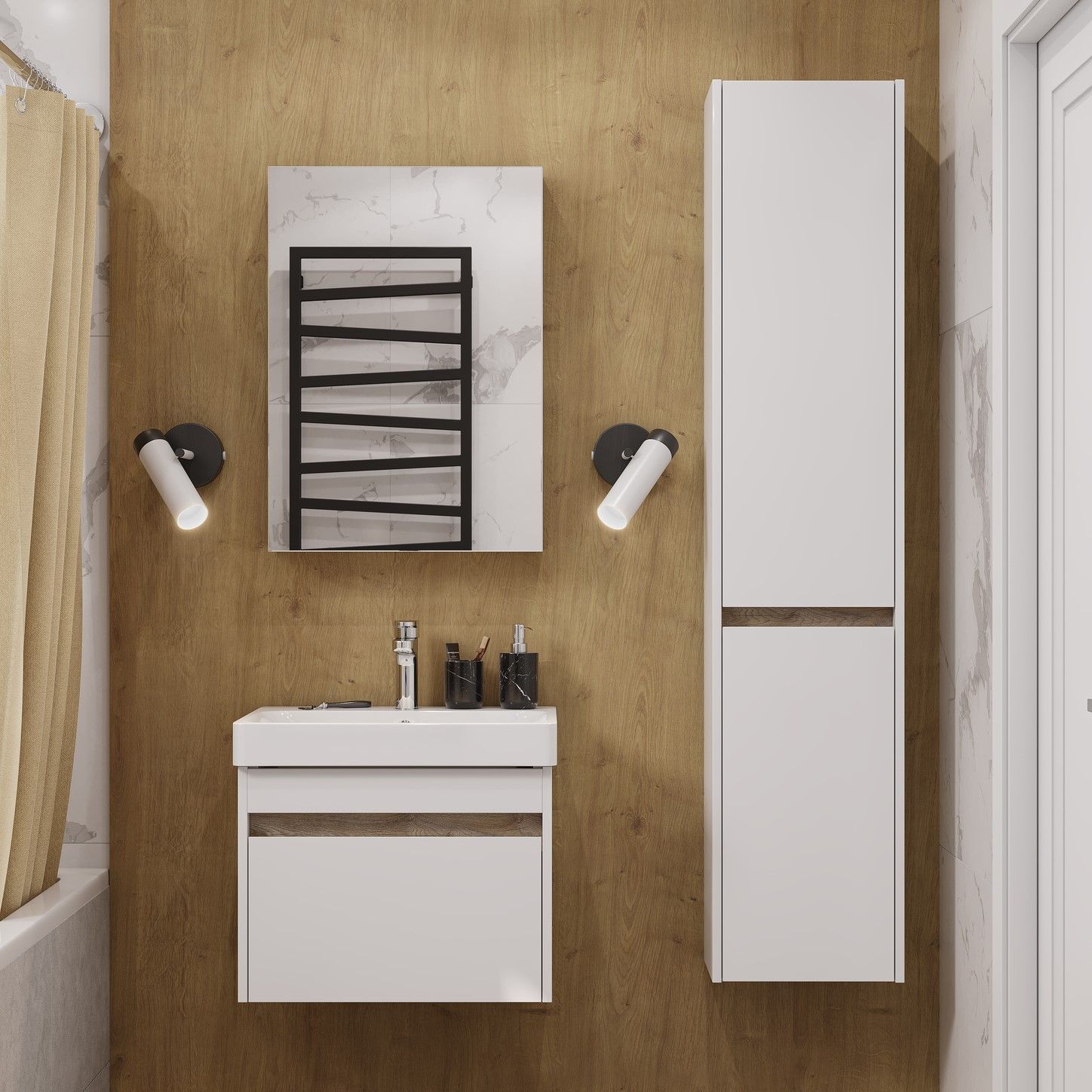 Корпус и боковые стенки изготовлены из влагостойкой ламинированной ДСП, окрашенной в белый цвет специальной краской ультрафиолетового отверждения для защиты мебели от влаги в условиях ванной комнаты.