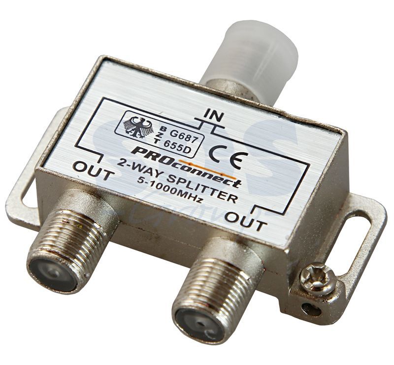 Спутниковый делитель предназначен для деления сигнала, идущего от эфирной антенны на два телевизора с помощью F-разъемов. Другое название — сплиттер. Представляет собой устройство, заключенное в металлический корпус, оснащенный несколькими разъемами для подключения телевизионных кабелей. Равномерно распределяет сигнал от внешнего источника на нужное количество выходов, к которым подключаются телевизоры или другие приемники ТВ-сигнала (подключение по схеме «звезда»). При встраивании делителя в систему нет необходимости в пайке контактов. Кабели обжимаются при помощи F-штекеров и легко накручиваются на резьбу разъемов сплиттера.