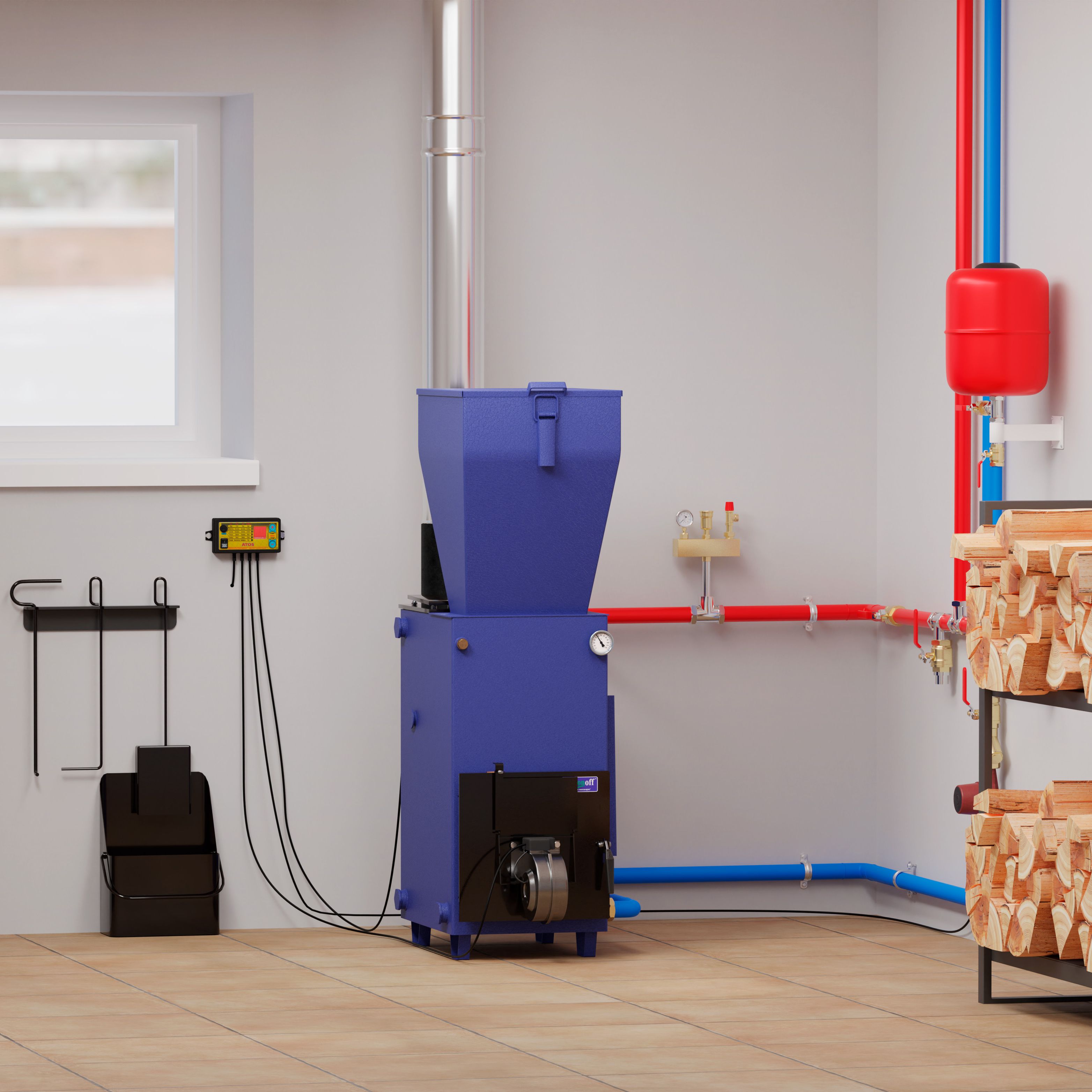 ДОПОЛНИТЕЛЬНАЯ КОМПЛЕКТАЦИЯ: автоматический регулятор тяги подачи воздуха, ТЭН, командо-контроллер, турбину и бункер.