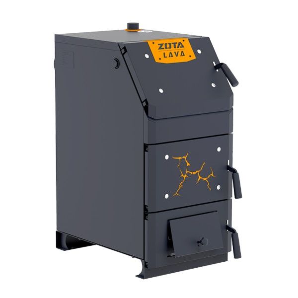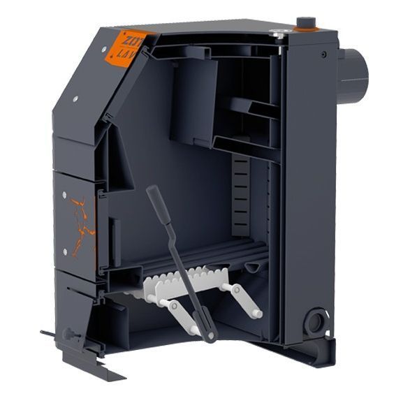 Твердотопливный отопительный котел ZOTA Lava-17 с ручной загрузкой топлива и розжигом. Основной особенностью котла является топка с водонаполненными колосниками.