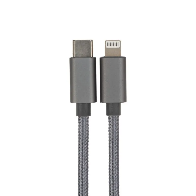 Кабель USB-Type-C- Lightning PD (Rexant), 3A, нейлон, 1м, серый (18-1826)