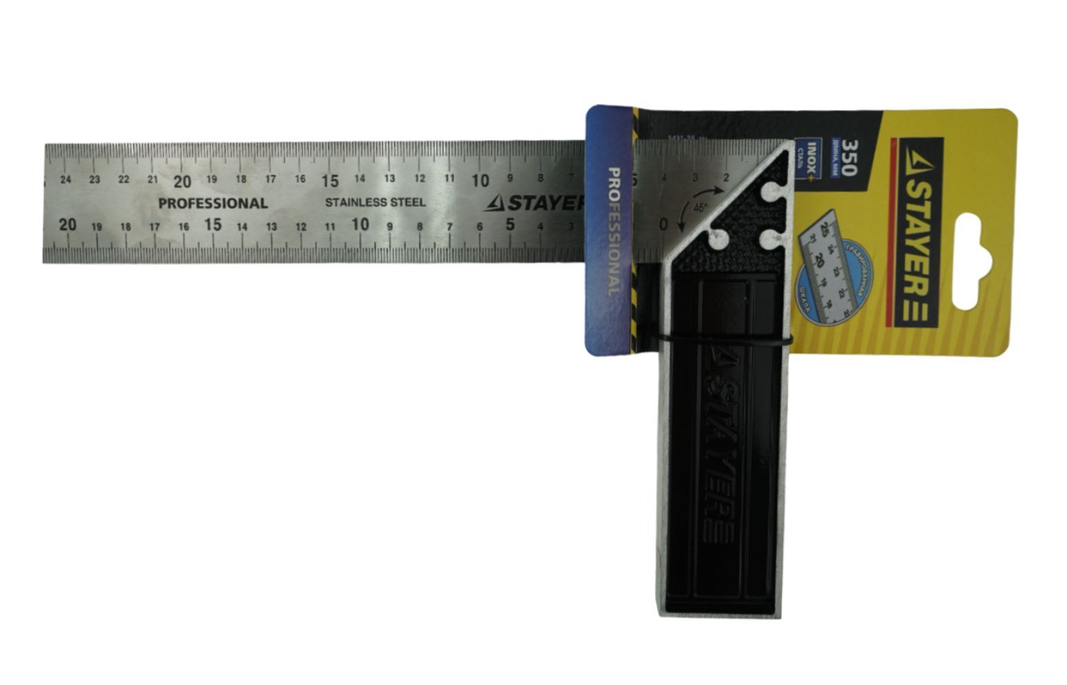 Cтолярный угольник "PROFI" Stayer изготовлен из нержавеющей стали.