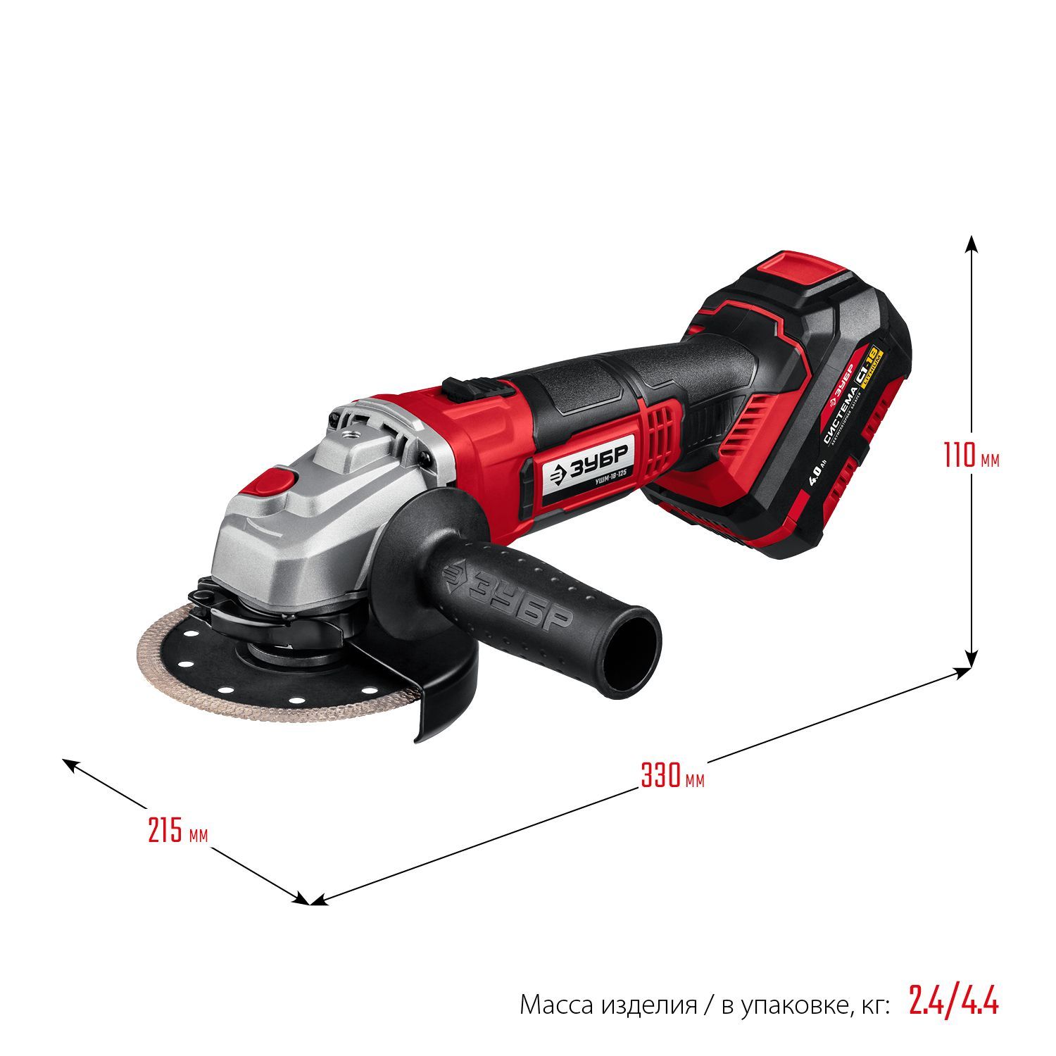 • Батарея емкостью 4.0 Ач в комплекте для безостановочной работы