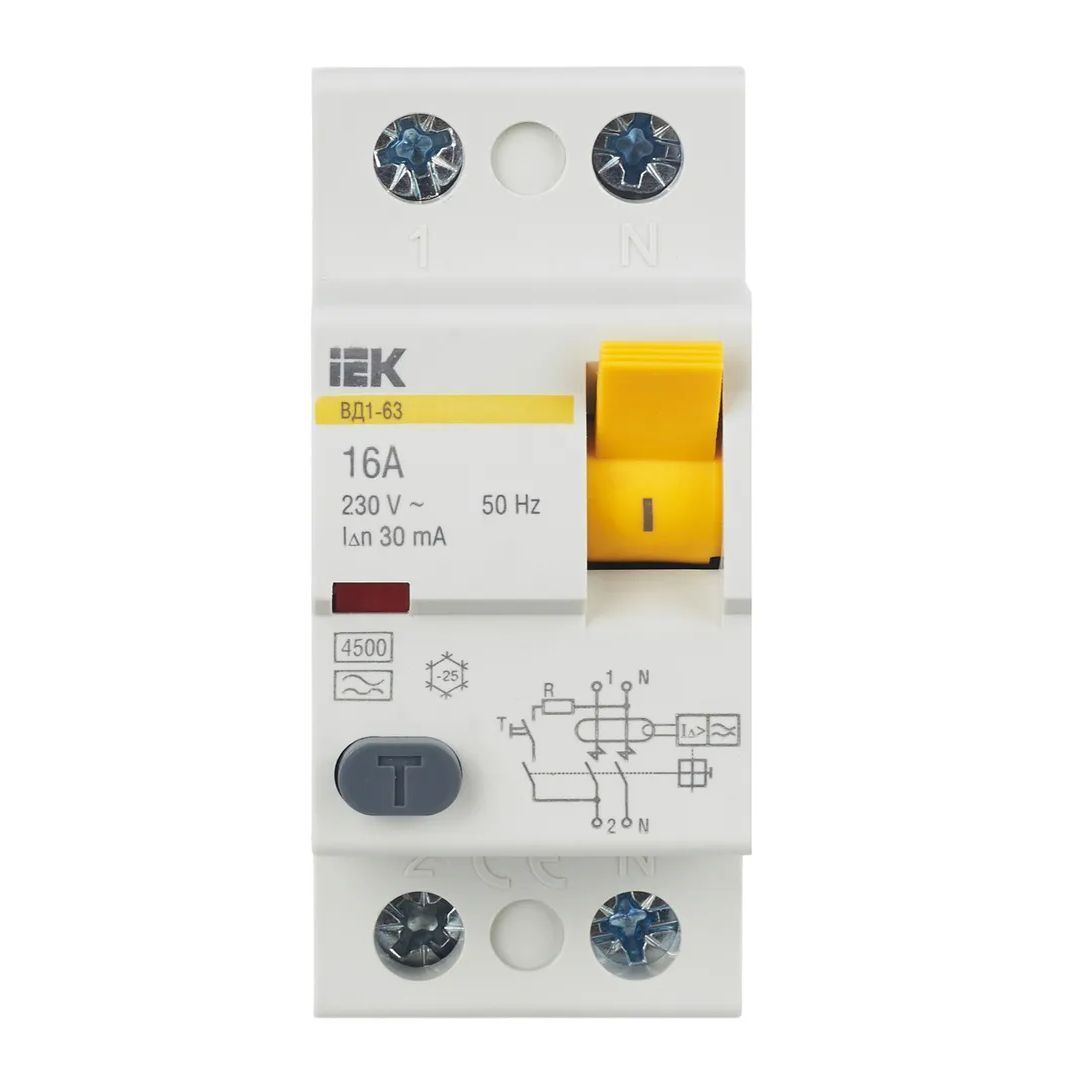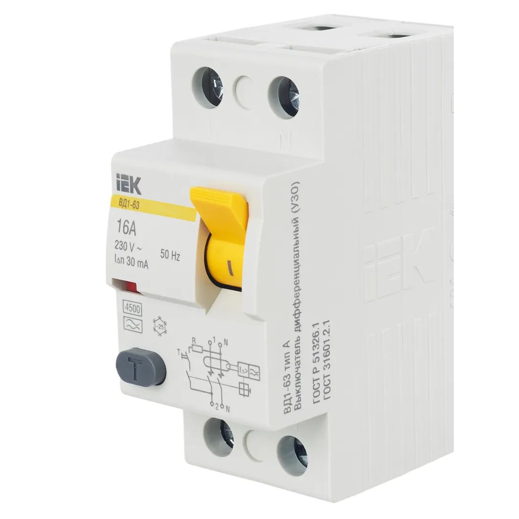 Выключатель дифференциальный (УЗО) ВД1-63 (IEK) 2P 16А 30мА, АС цена - купить в Барнауле, Бийске. Размеры, характеристики, фото в интернет-магазине.