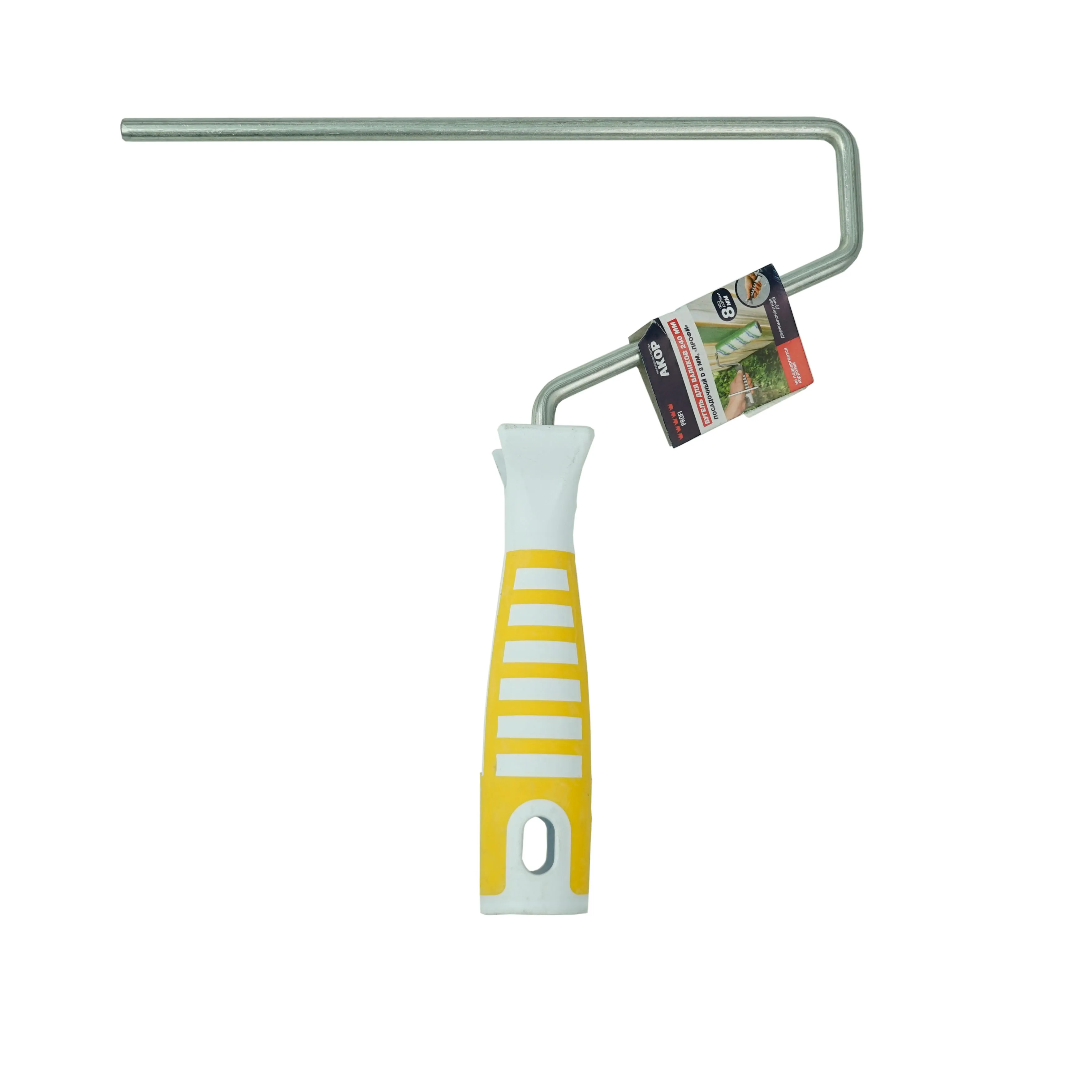 Ручка для валика Профи (АКОР) бюгель длина 240мм применяется для работы с валиками с посадочным диаметром 8 мм. Представляет собой оснастку для рабочей части малярного валика. Инструмент в сборе применяется для нанесения антисептических, выравнивающих и финишных покрытий на поверхность. Стальной каркас обеспечивает надежное крепление сменных валиков.
