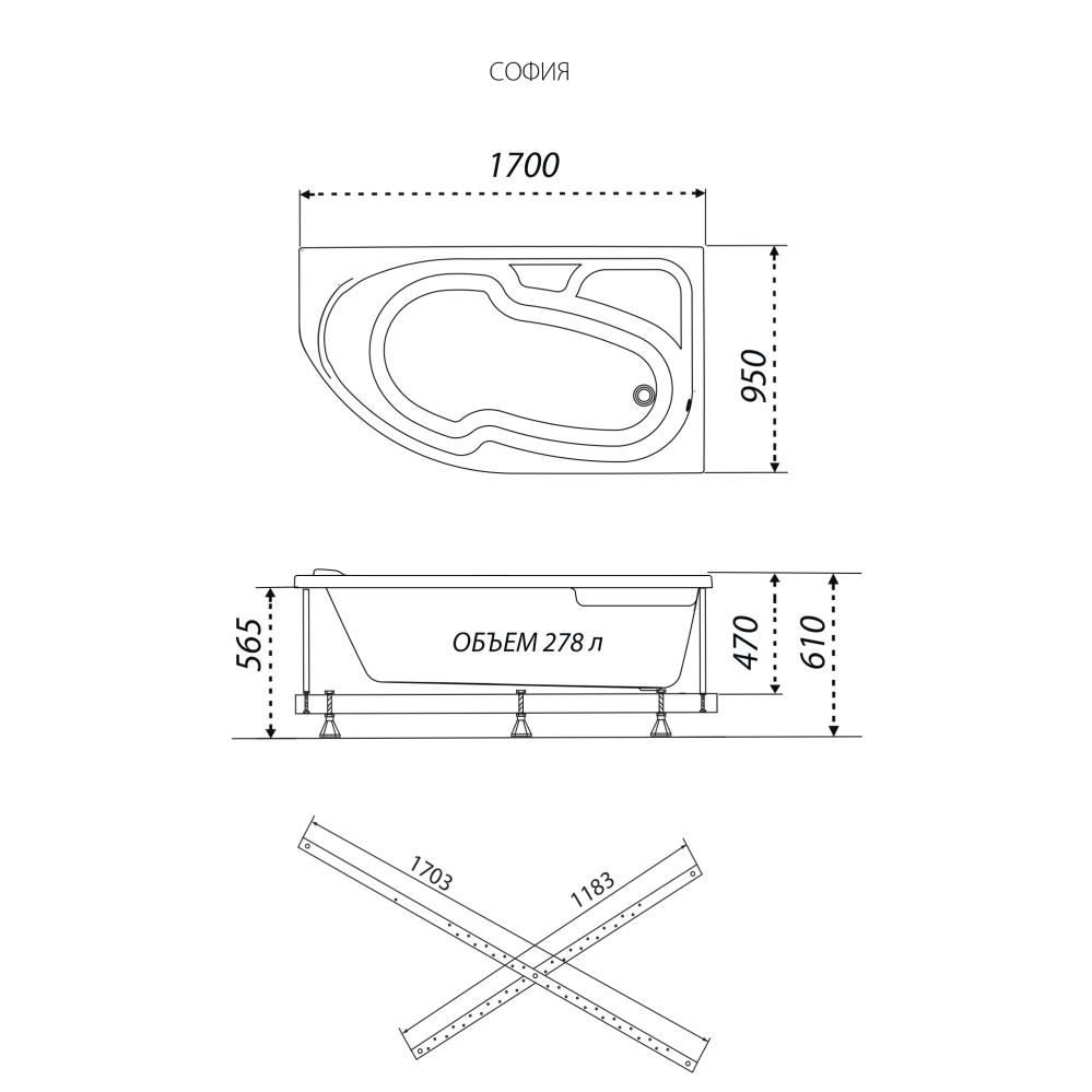 Ванна Тритон София - асимметричная ванна с расширением со стороны спины и удобным выступом-сиденьем. Устанавливается в угол, занимает меньше места, при этом просторная и вместительная.