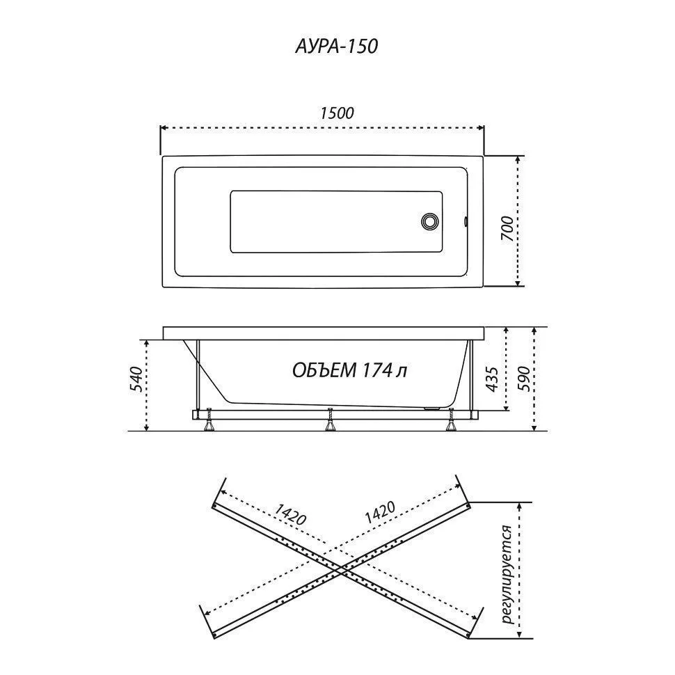 Ванна акриловая Аура классической прямоугольной формы от бренда Triton.