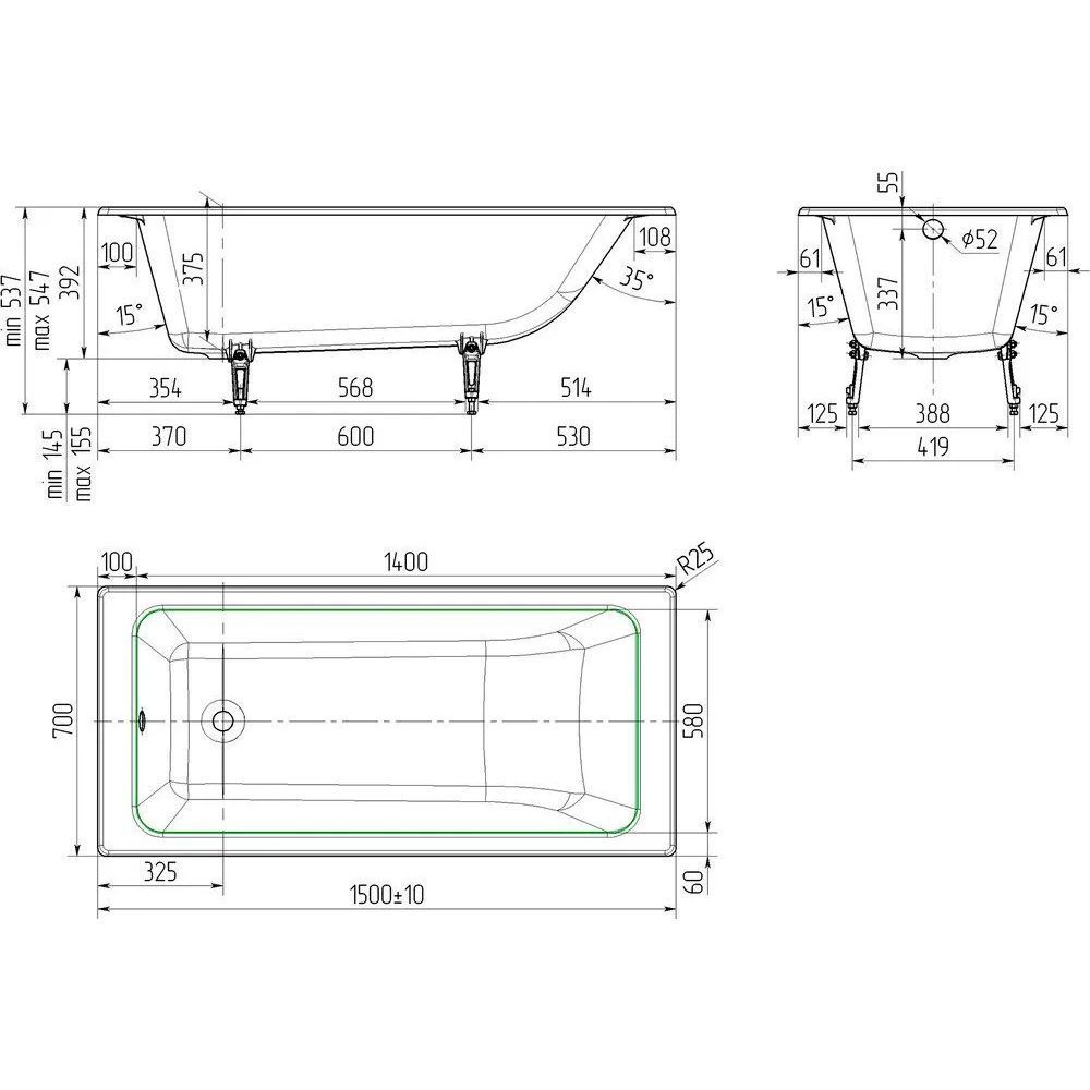 Чугунная ванна Оптима от завода Универсал — это современный дизайн, прямоугольное дно без скруглений и выраженный плоский борт. Комфорт в использовании достигается за счет уникальных свойств материала. Чугун обладает низкой теплопроводностью, не дающей воде быстро остывать, а усиленное звукопоглощение обеспечивает тишину во время наполнения ванны. Прямоугольная модель готова к установке — в комплекте есть ножки, которые можно отрегулировать до 5 см по высоте. Вы можете самостоятельно выставить оптимальный уровень бортика для входа. Покрытие из стекловидной эмали прочное и износостойкое. Царапины и сколы при случайном падении банных принадлежностей исключены. Эмаль не окрашивается и не впитывает загрязнения. Для очистки не нужна специальная бытовая химия — сохранить блеск и белизну изделия поможет простейший регулярный уход. Чугунные ванны Универсал соответствуют ГОСТ 18297–96 «Приборы санитарно-технические чугунные эмалированные». Они экологически безопасны — не токсичны, не содержат нефтепродуктов в составе и поддерживают вторичную переработку.