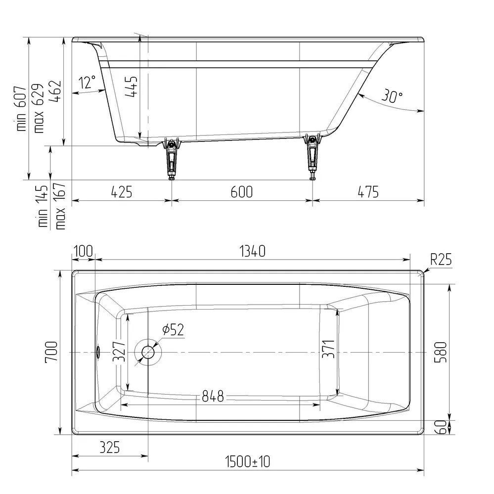 Ванна устанавливается строго горизонтально (по уровню), слив воды обеспечивается уклоном дна в 1,5 градуса.